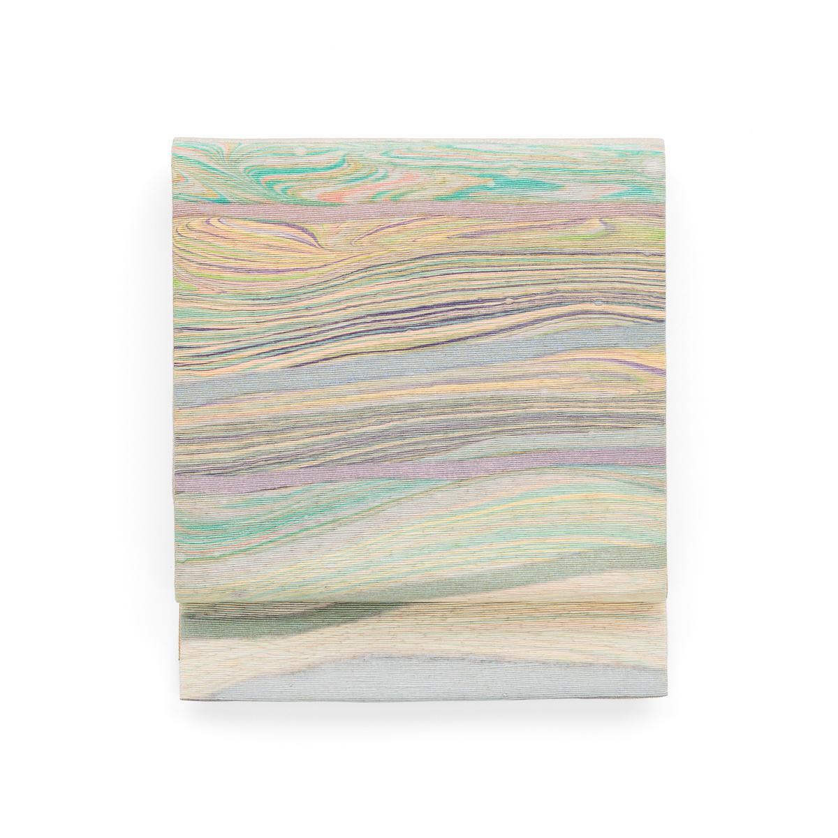 杢目のような、あるいは水紋のような抽象的な模様を染めた洒落袋帯です。
