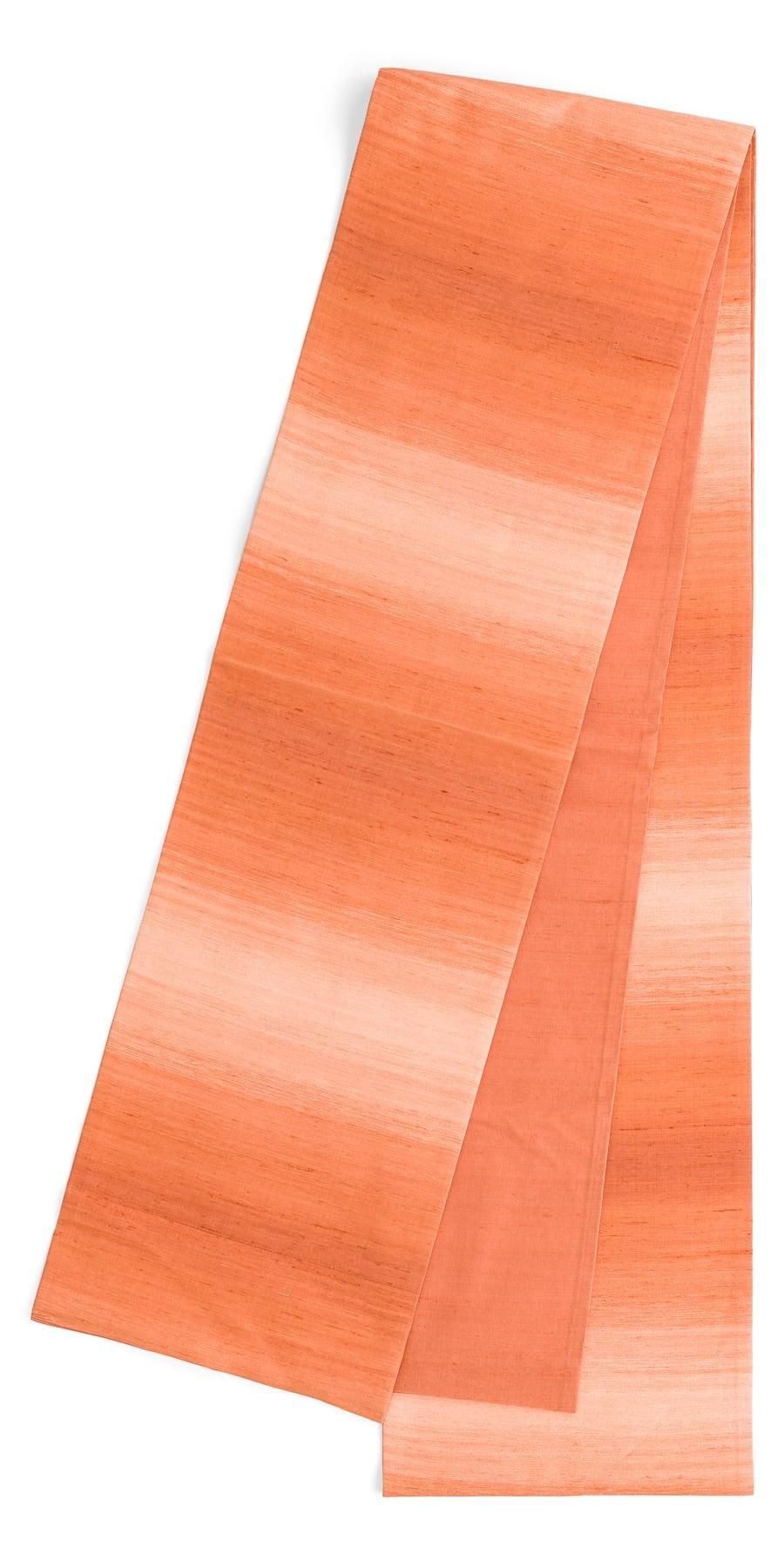 オレンジ色の暈しが美しい紬地の洒落袋帯です。