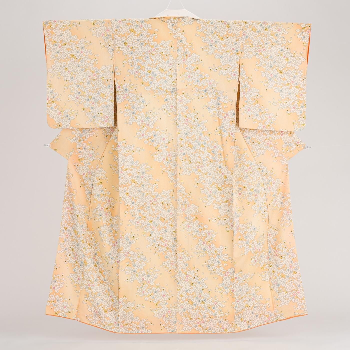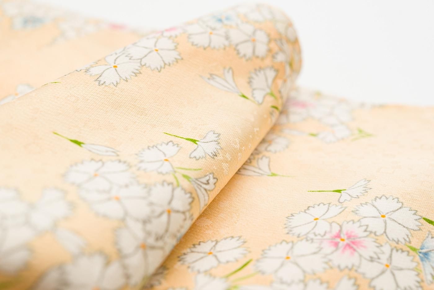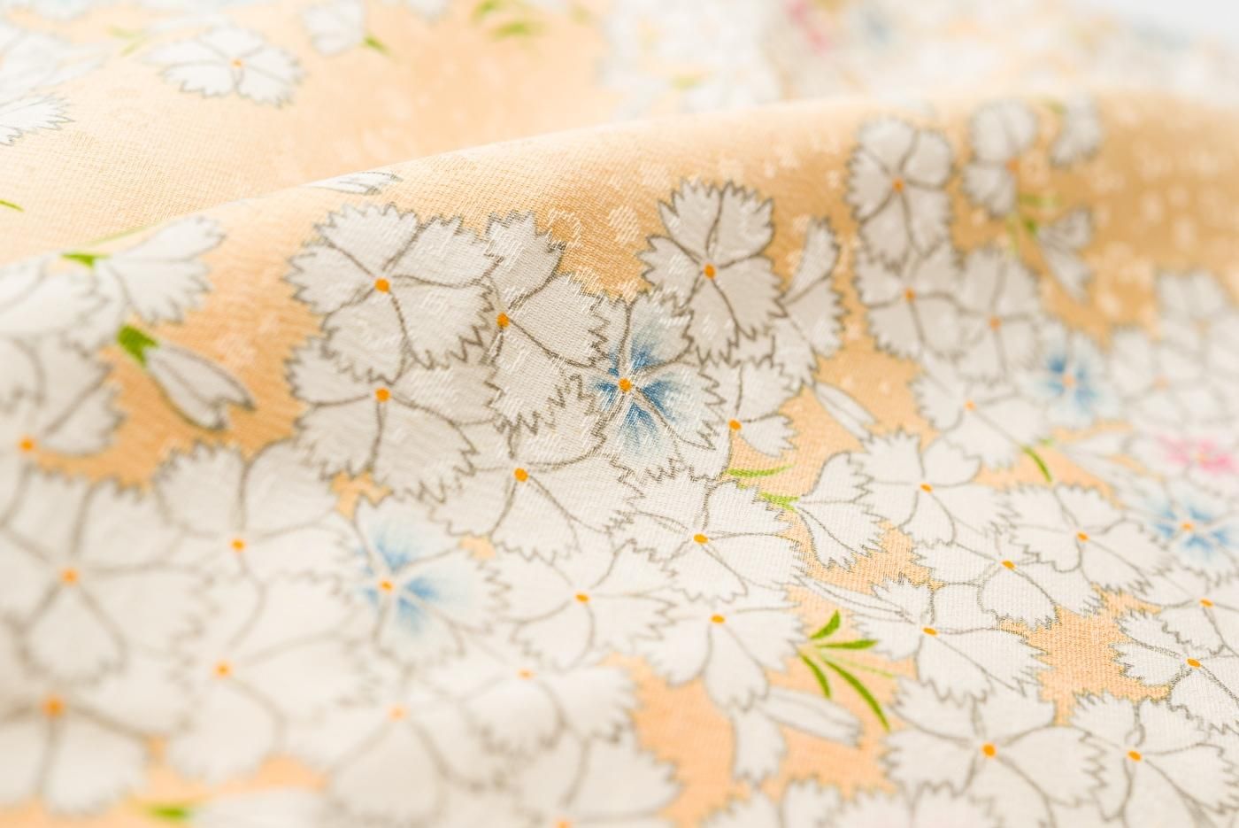 白い撫子がライン状に繋がって咲く小紋の着物です。