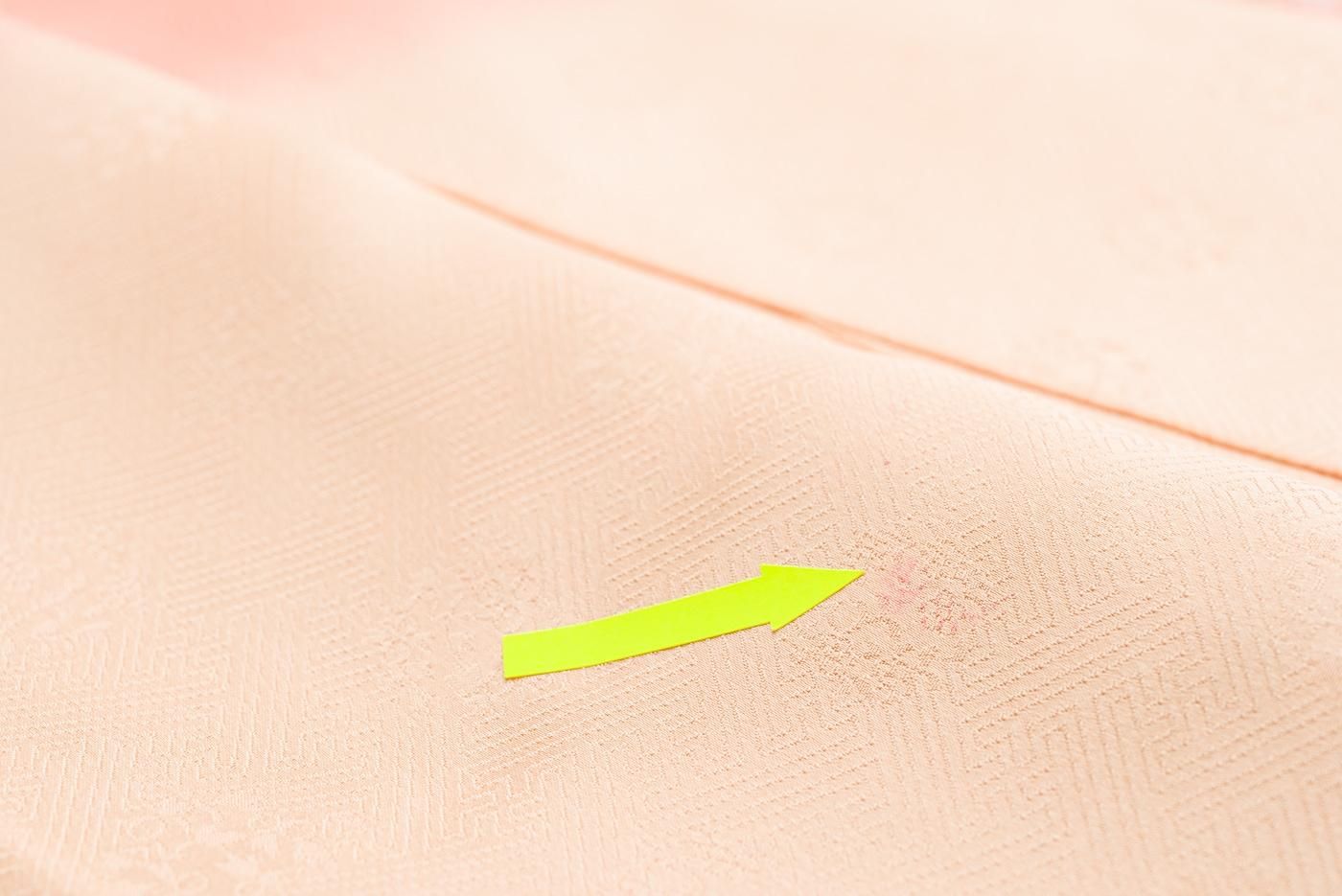 右前身頃、肩山下27cmの付近にピンクの色移りがあります。