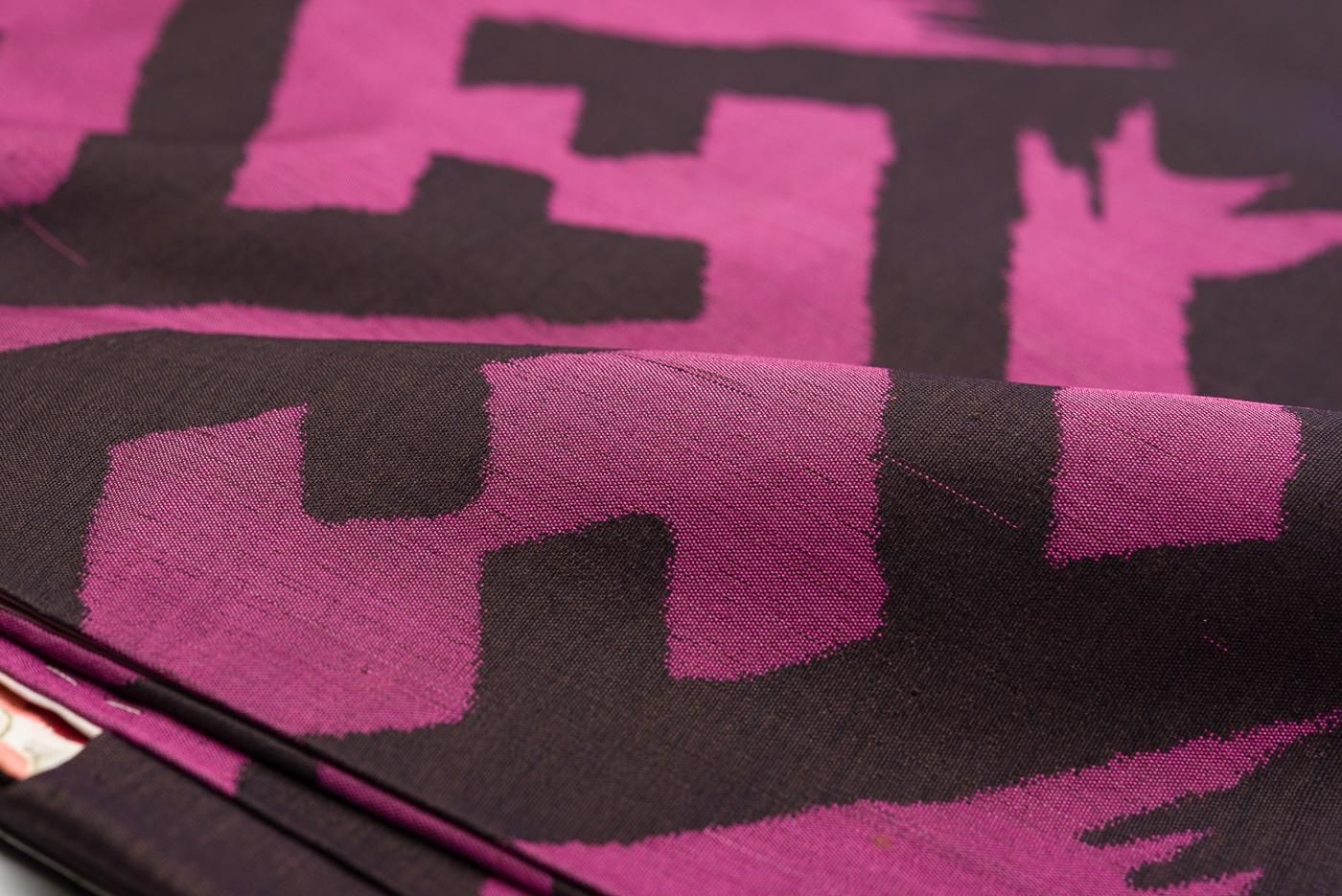 アンティーク銘仙らしい大胆なデザインは遠くからでも目を惹きますね。