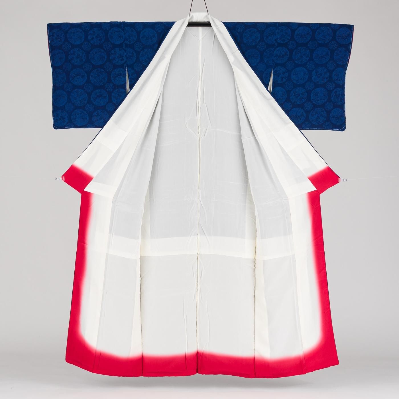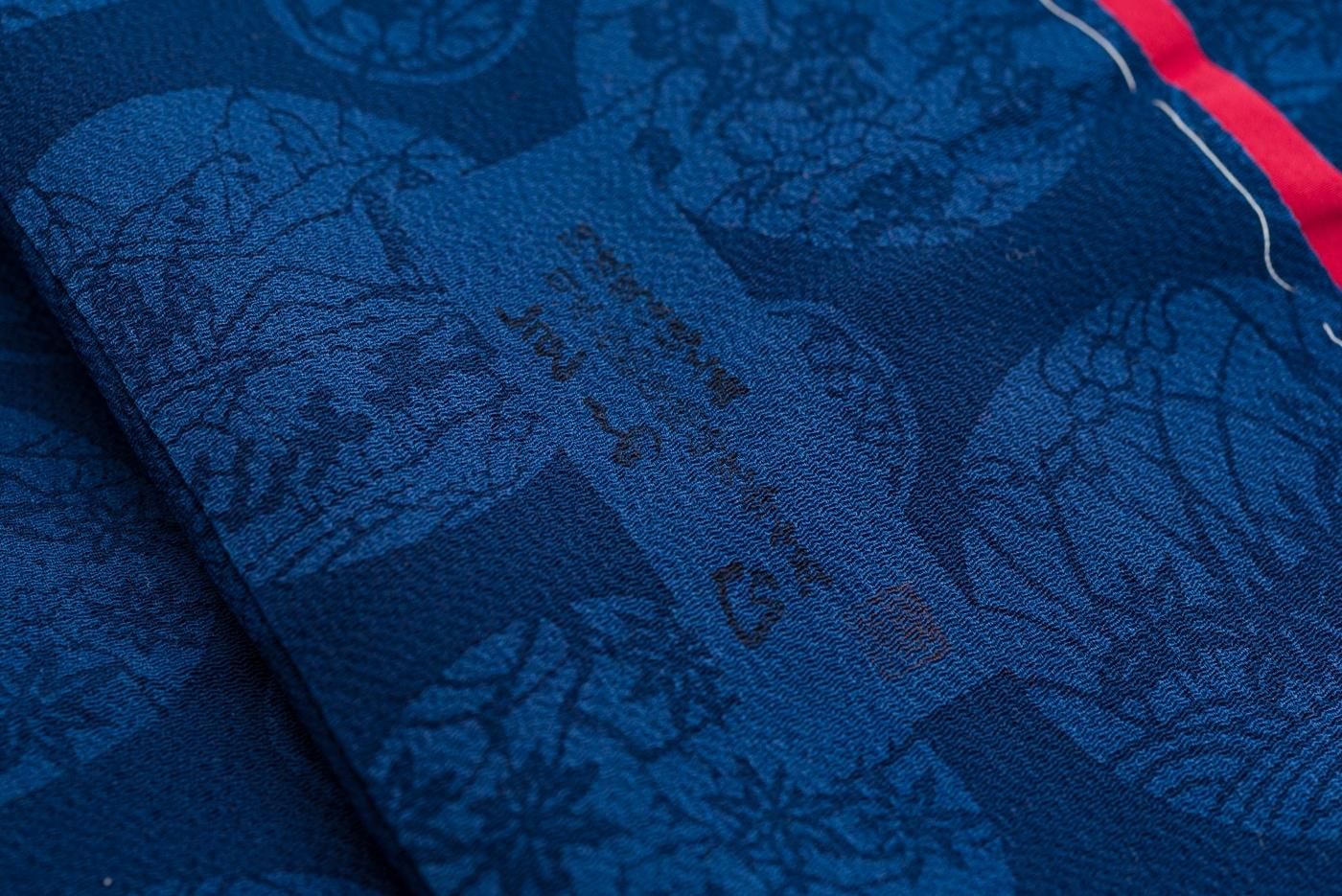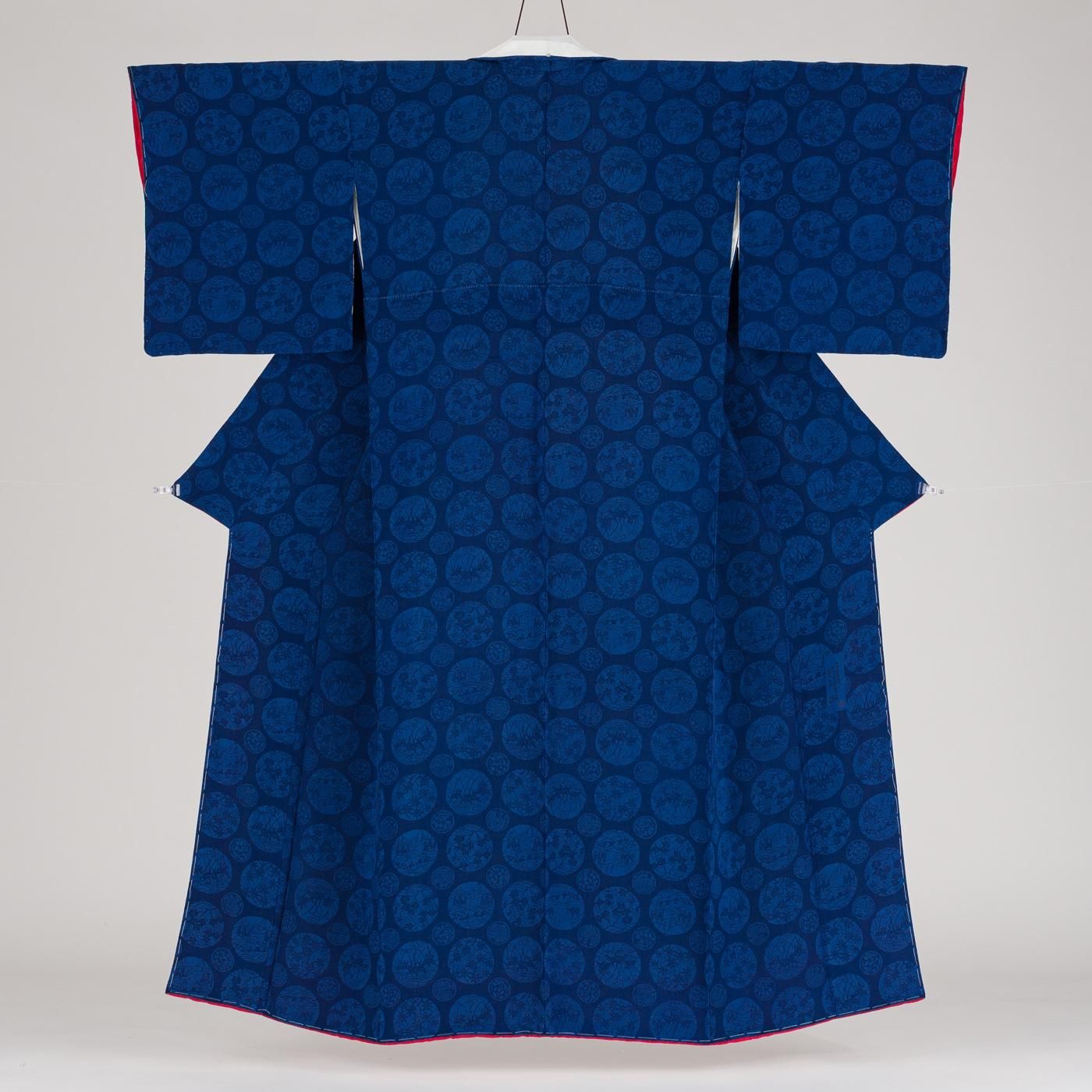 しっかりとした縮緬地に染めたのは四季花の丸紋。