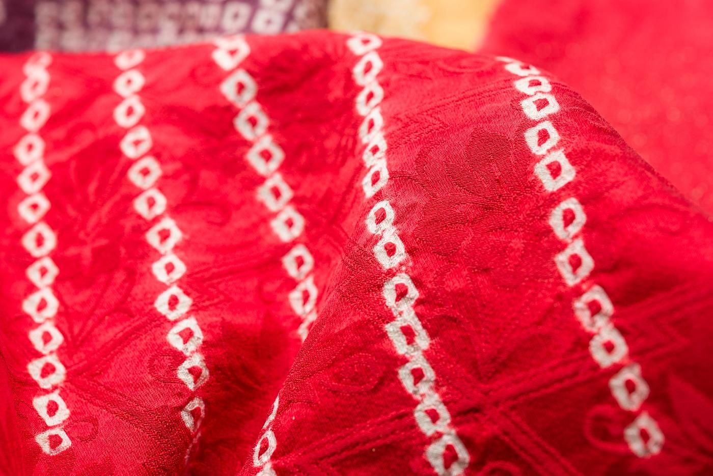 絞りの技法もたっぷりと使われた贅沢な振袖ですよ。
