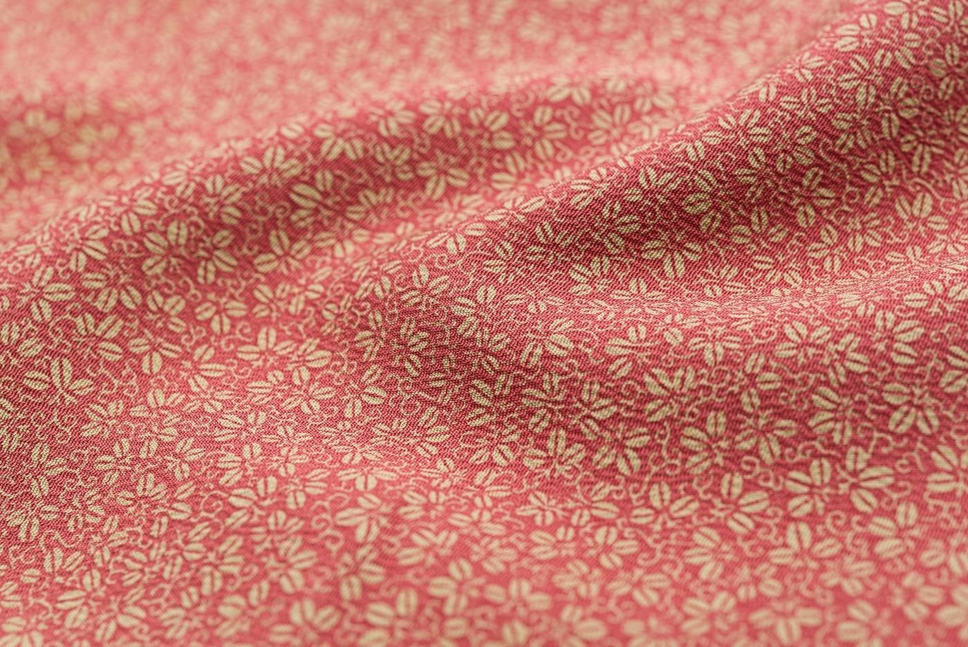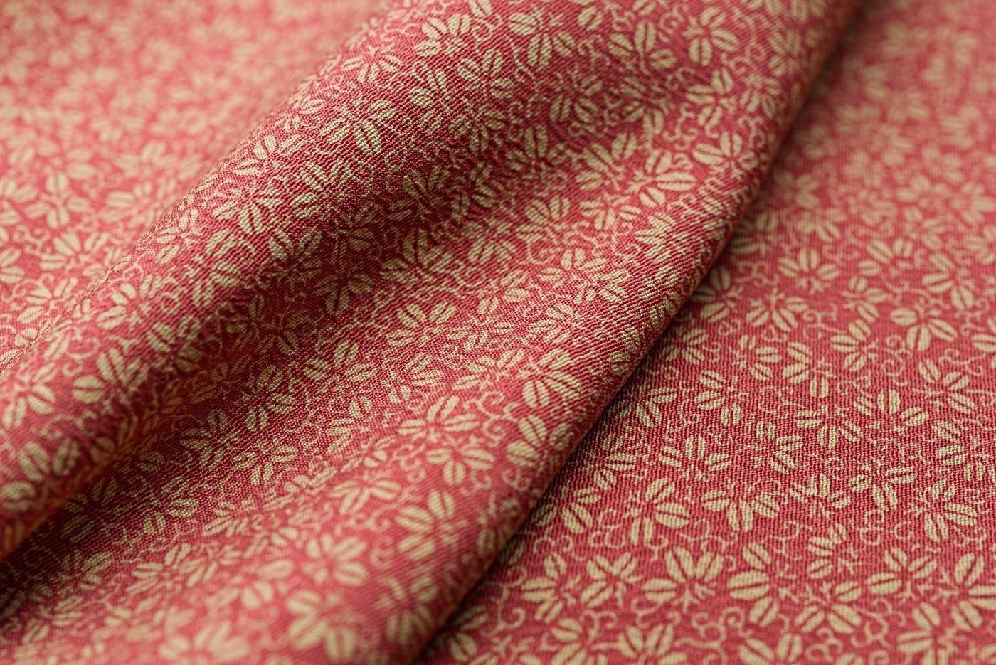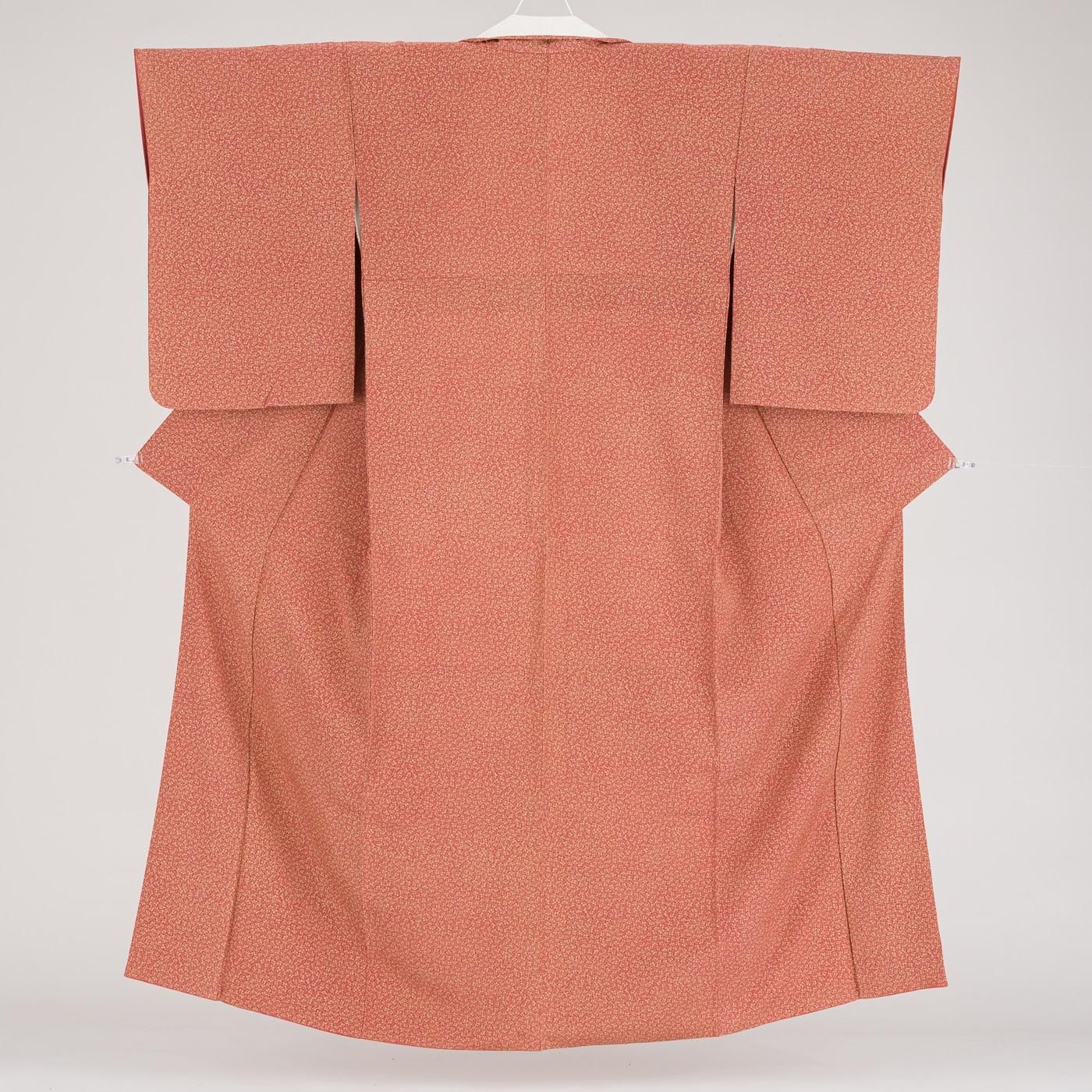 真朱色の地にイエローベージュの桐を染めた江戸小紋の着物です。