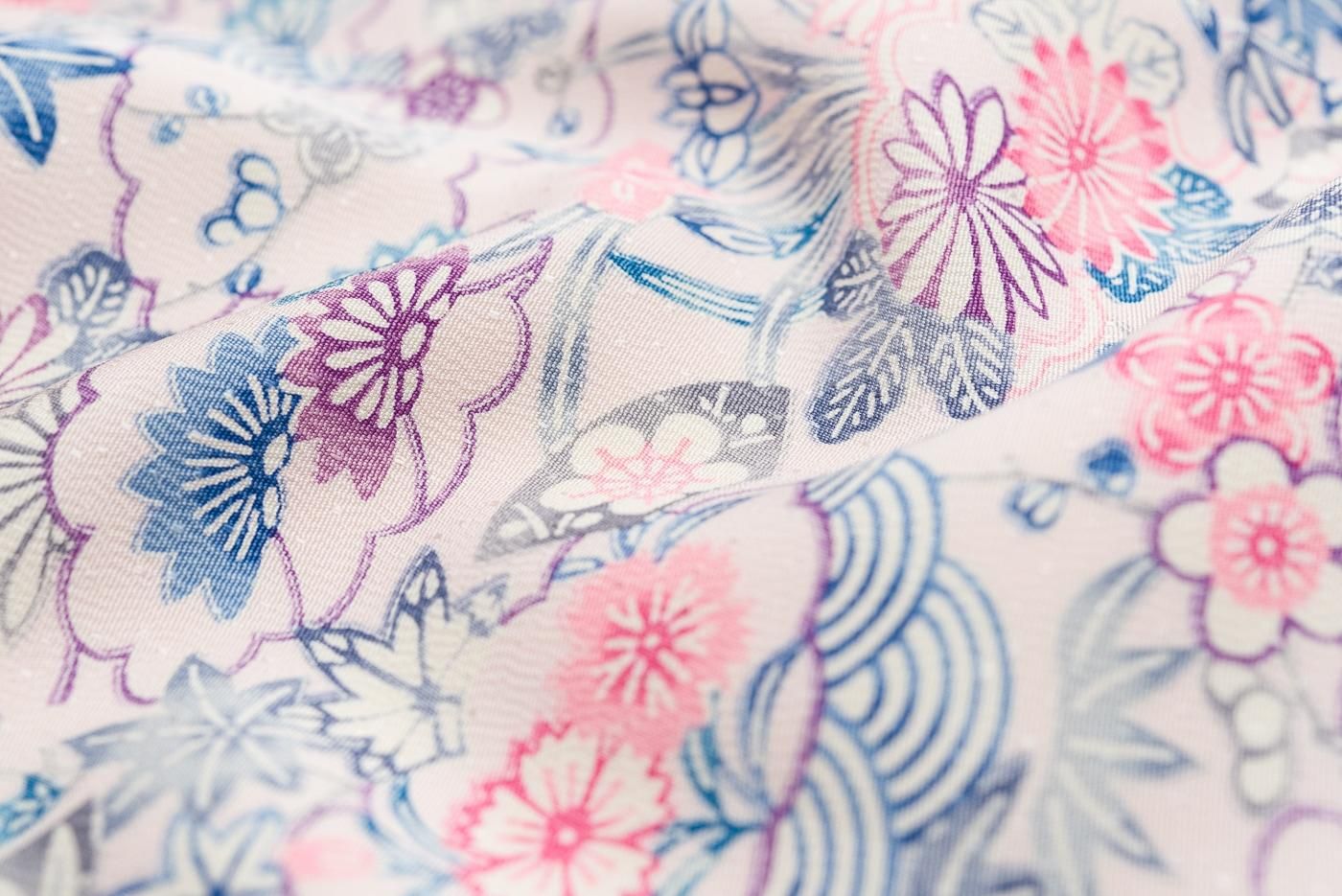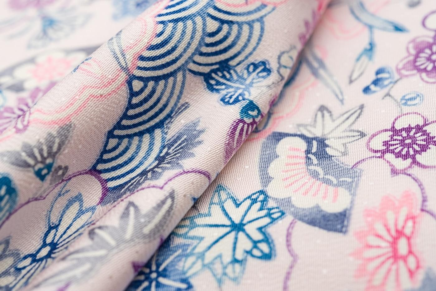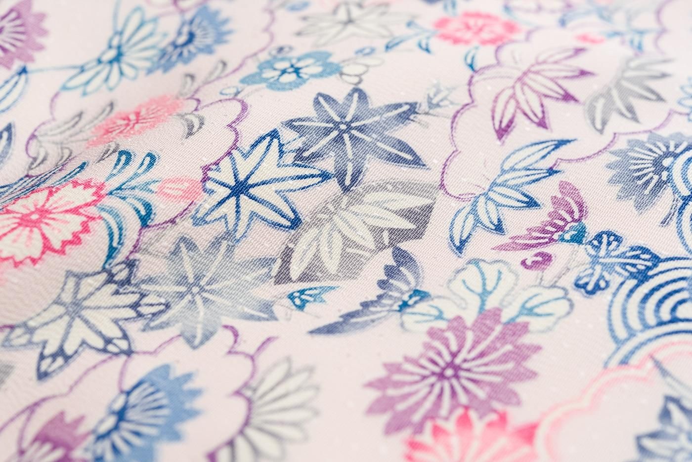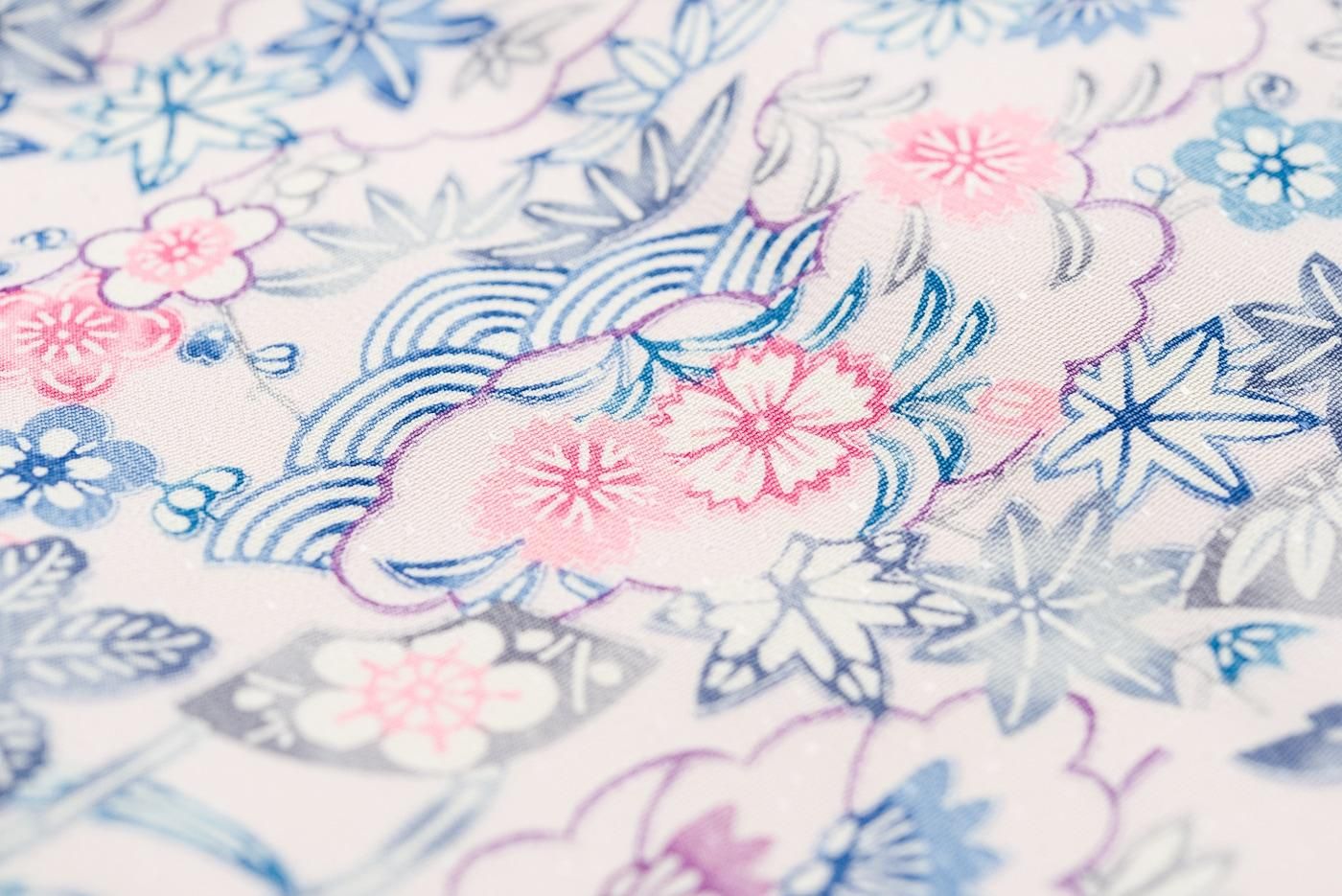 青海波や雲取りなど古典的な文様も合わせてデザインされた華やかで可愛らしい1枚です。