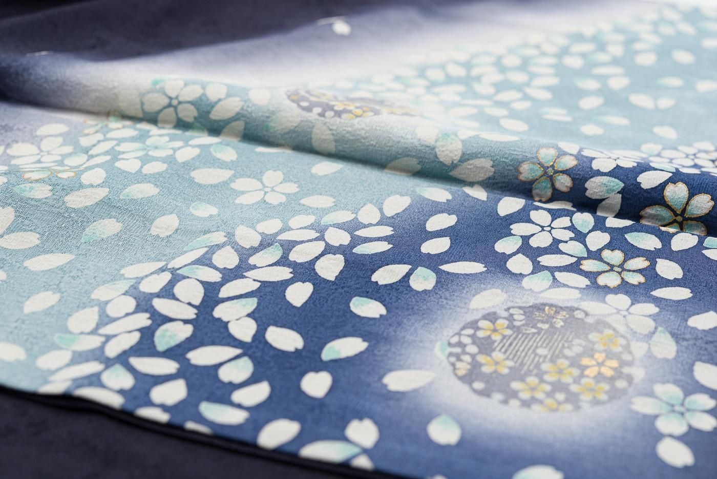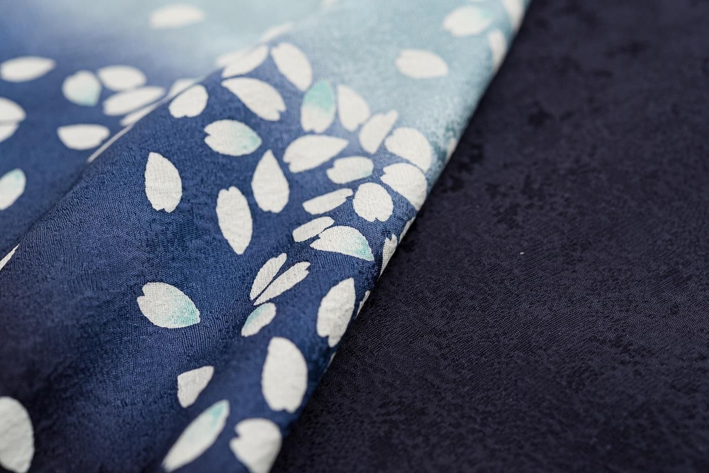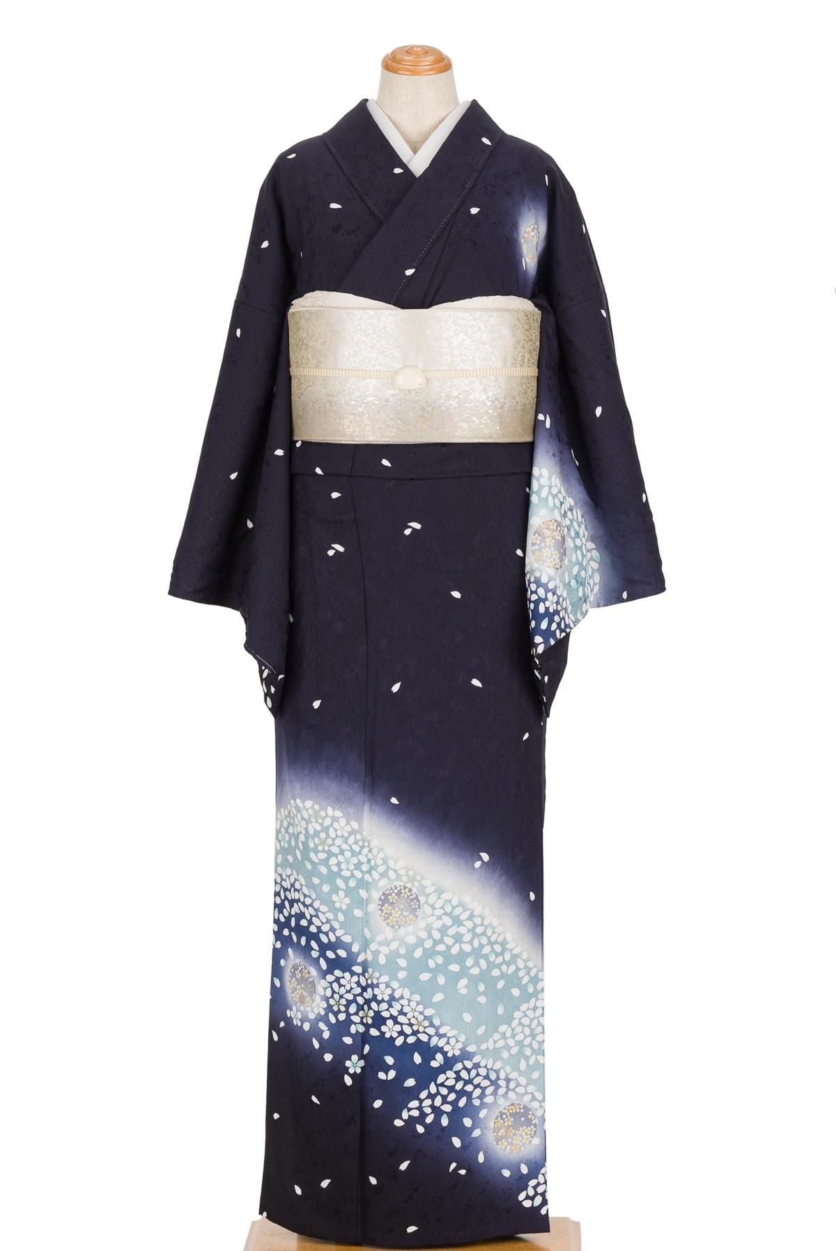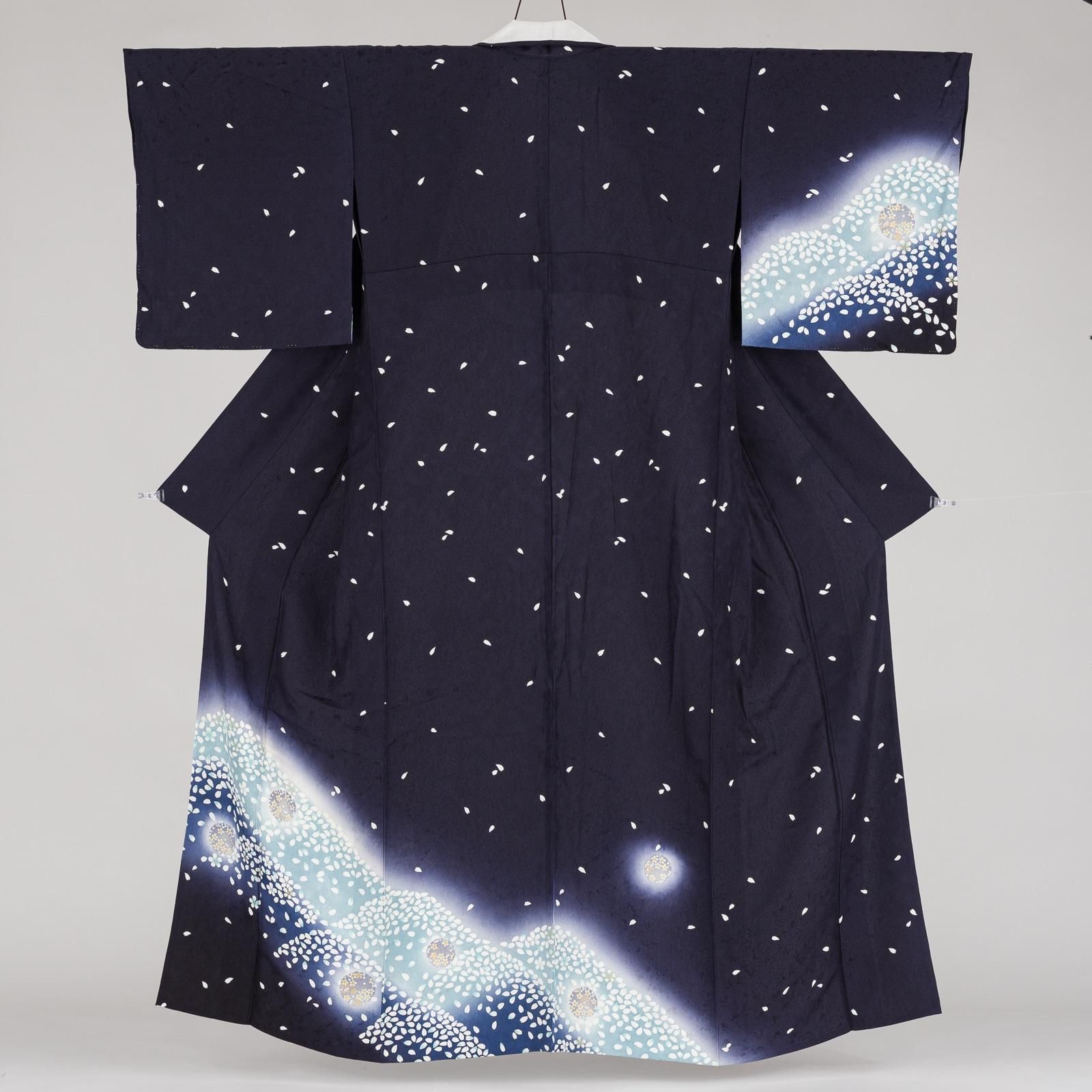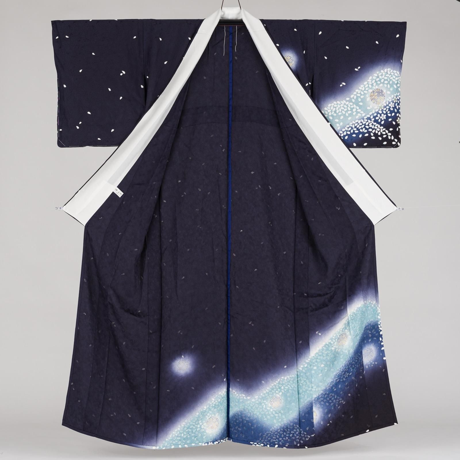 白い花弁が作る山のシルエットが幻想的で美しい、単衣の訪問着です。