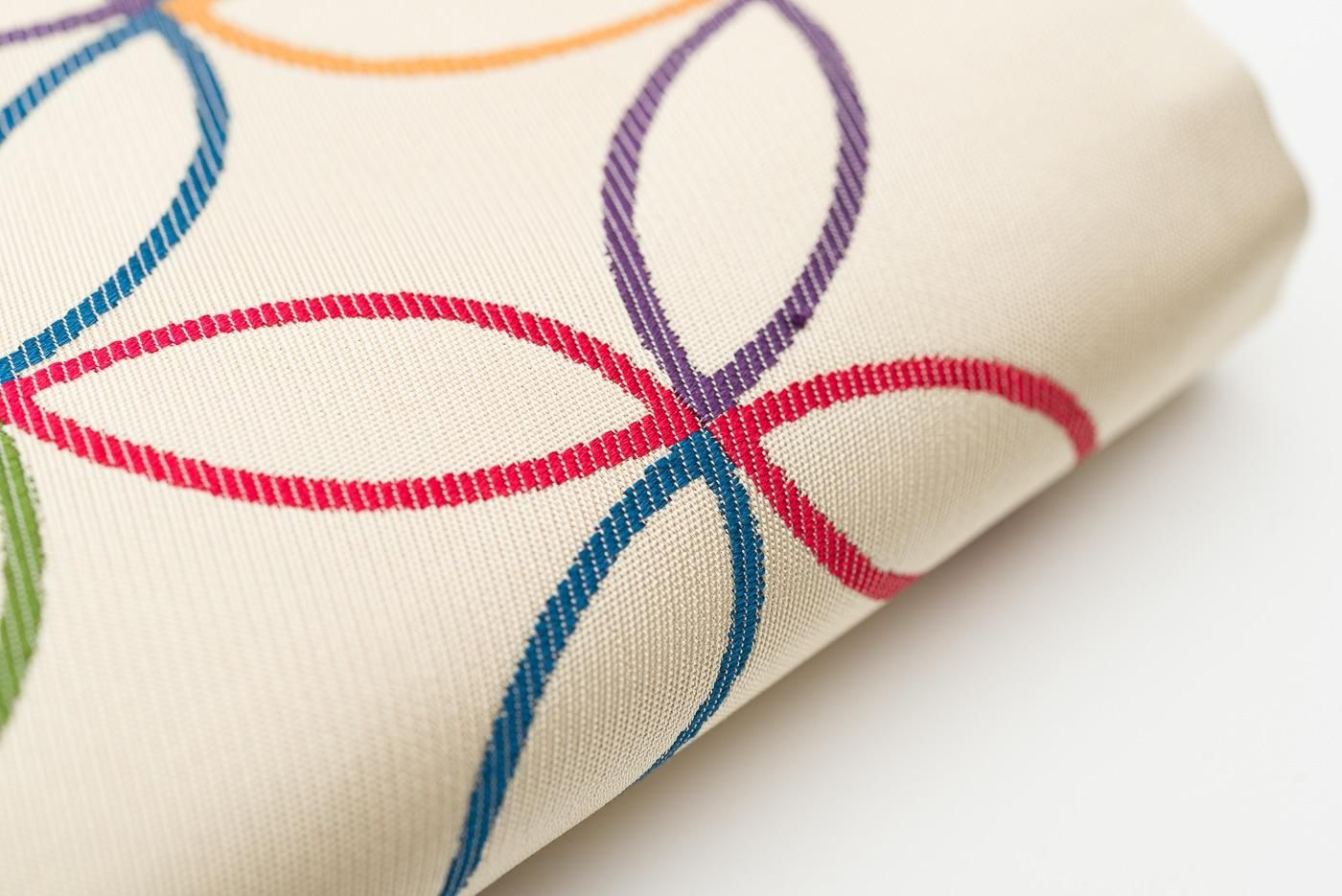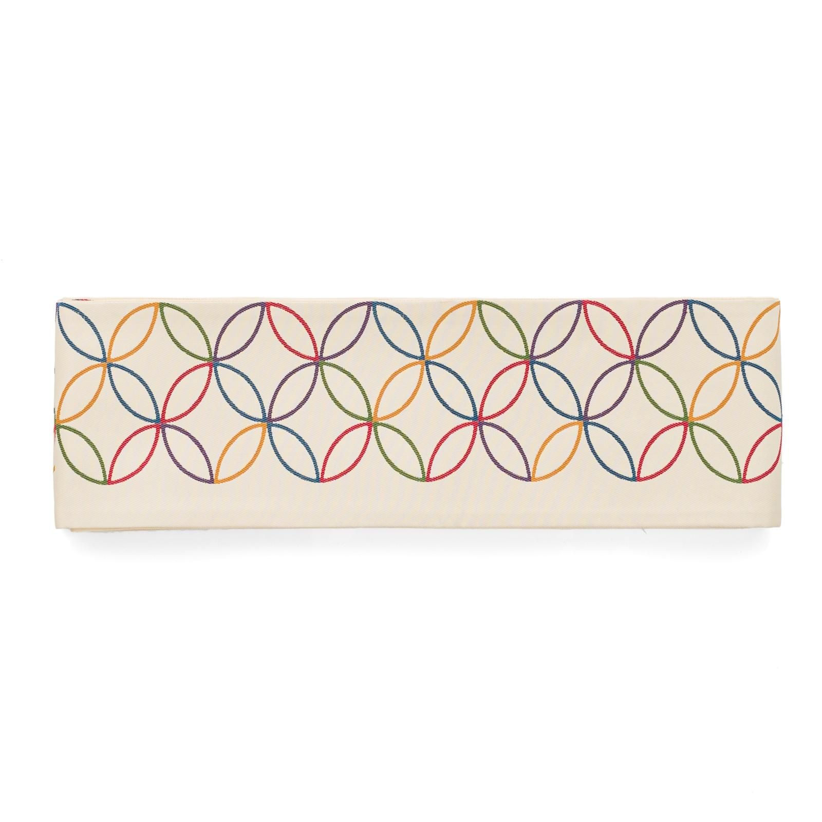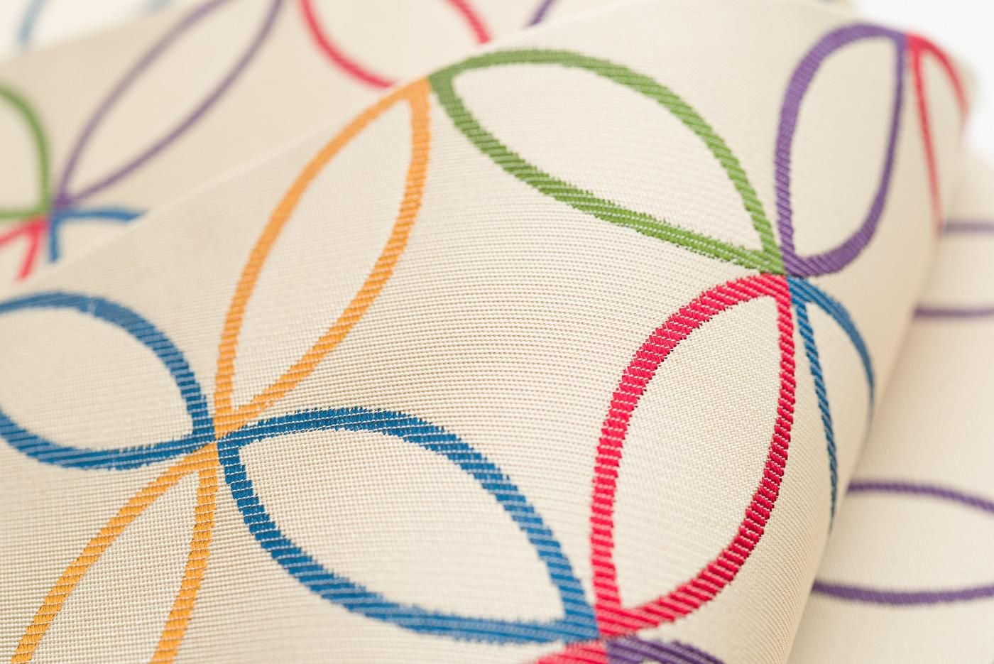 カラフルな七宝文様を織り出した博多織の紋小袋帯です。