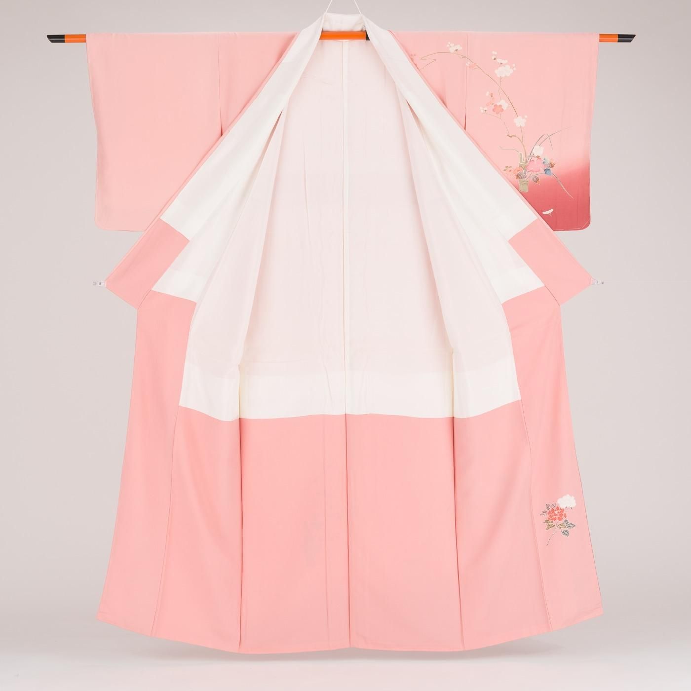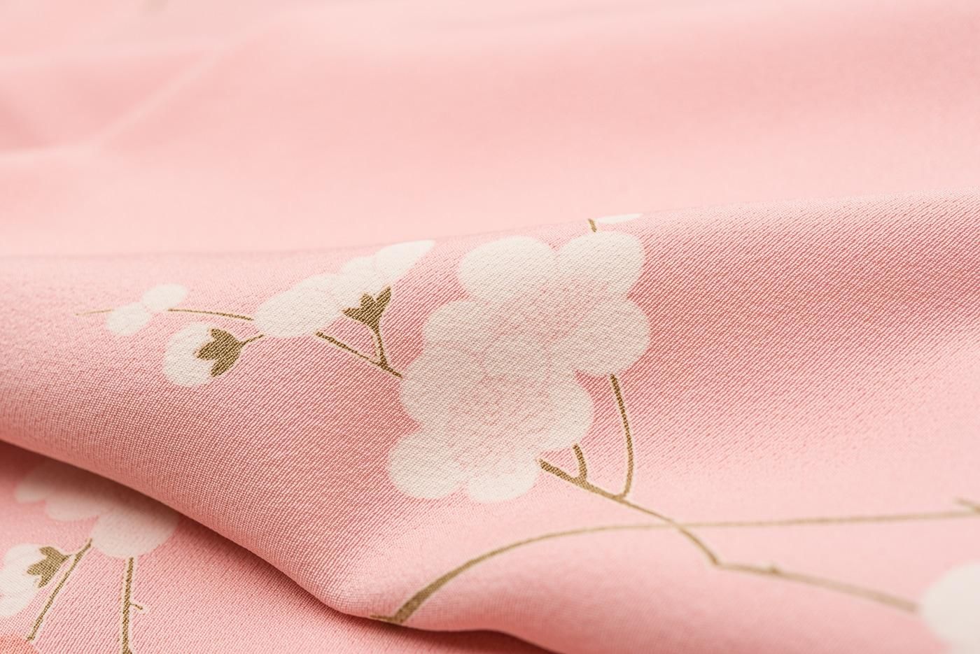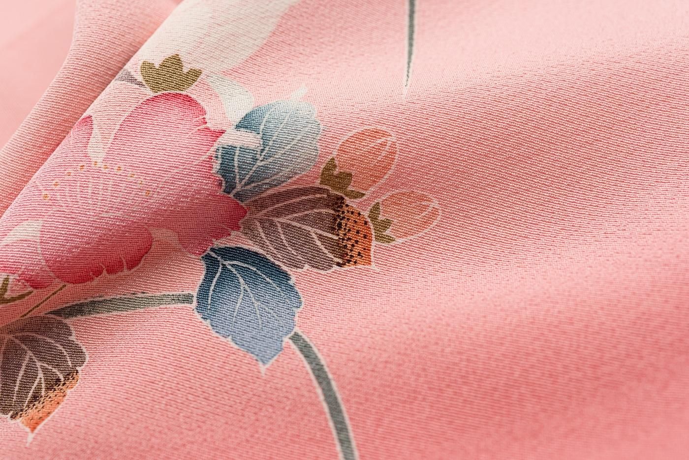 花に重ねた雪輪の刺繍も地色のピンクと良く似合って可愛らしい雰囲気です。