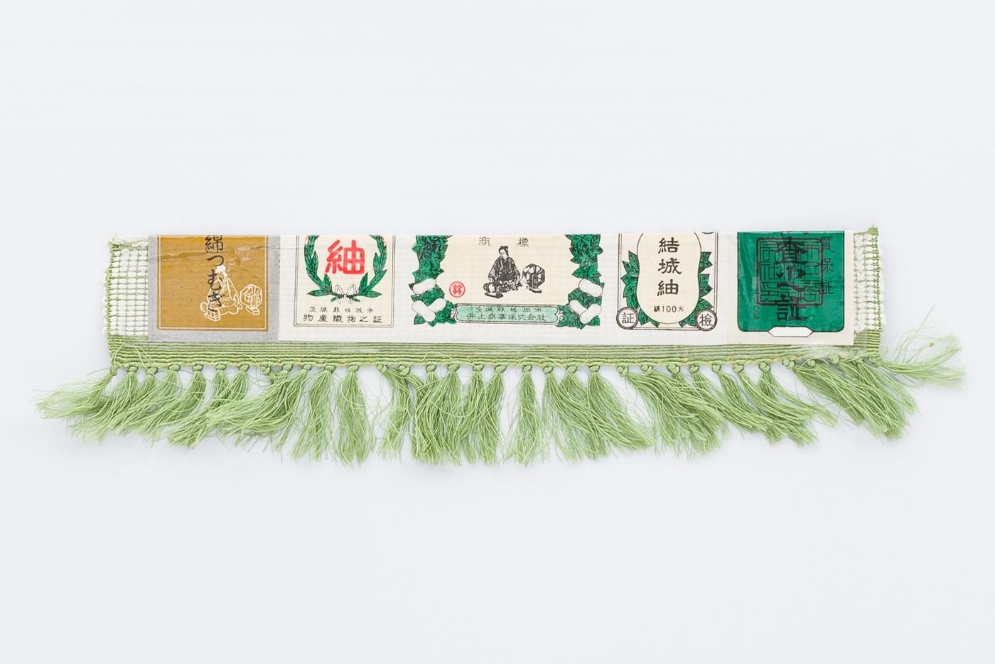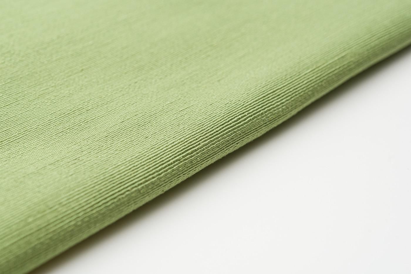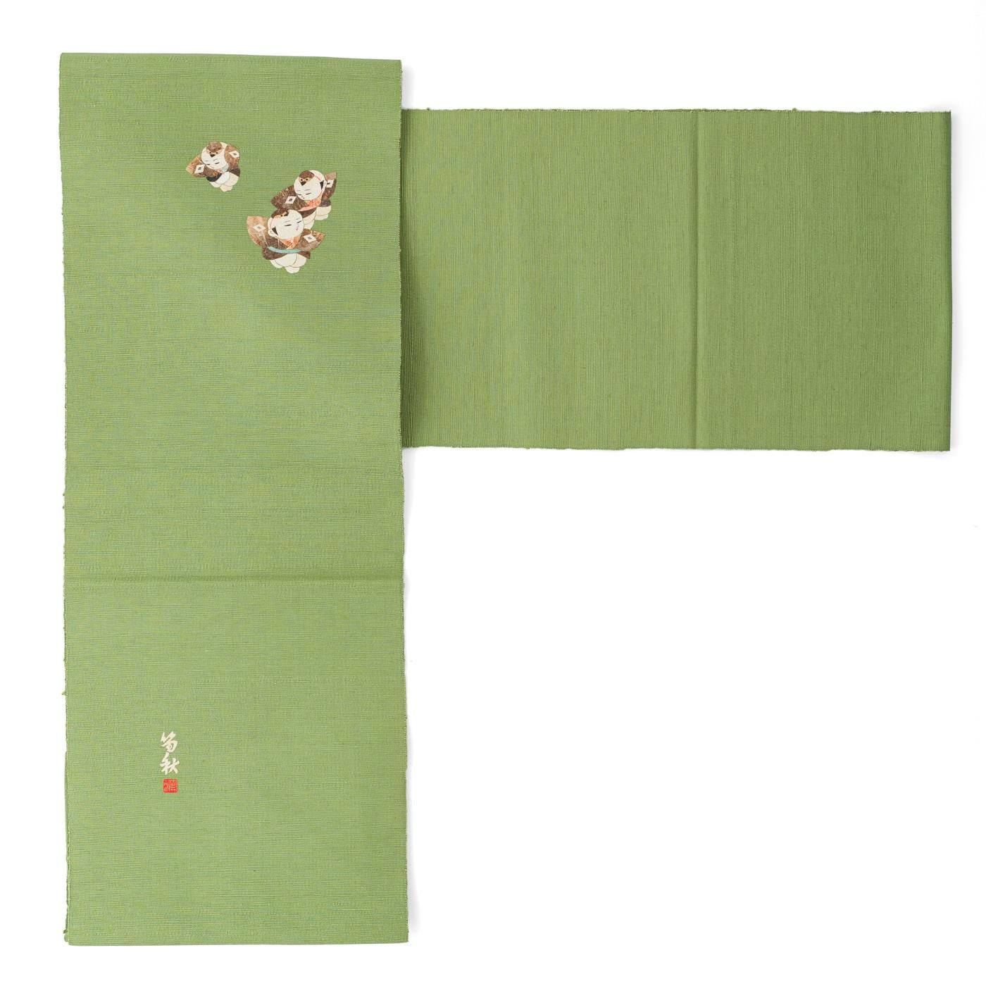 草色の結城紬の帯地に奴人形が踊る何とも愛らしい柄ですね。