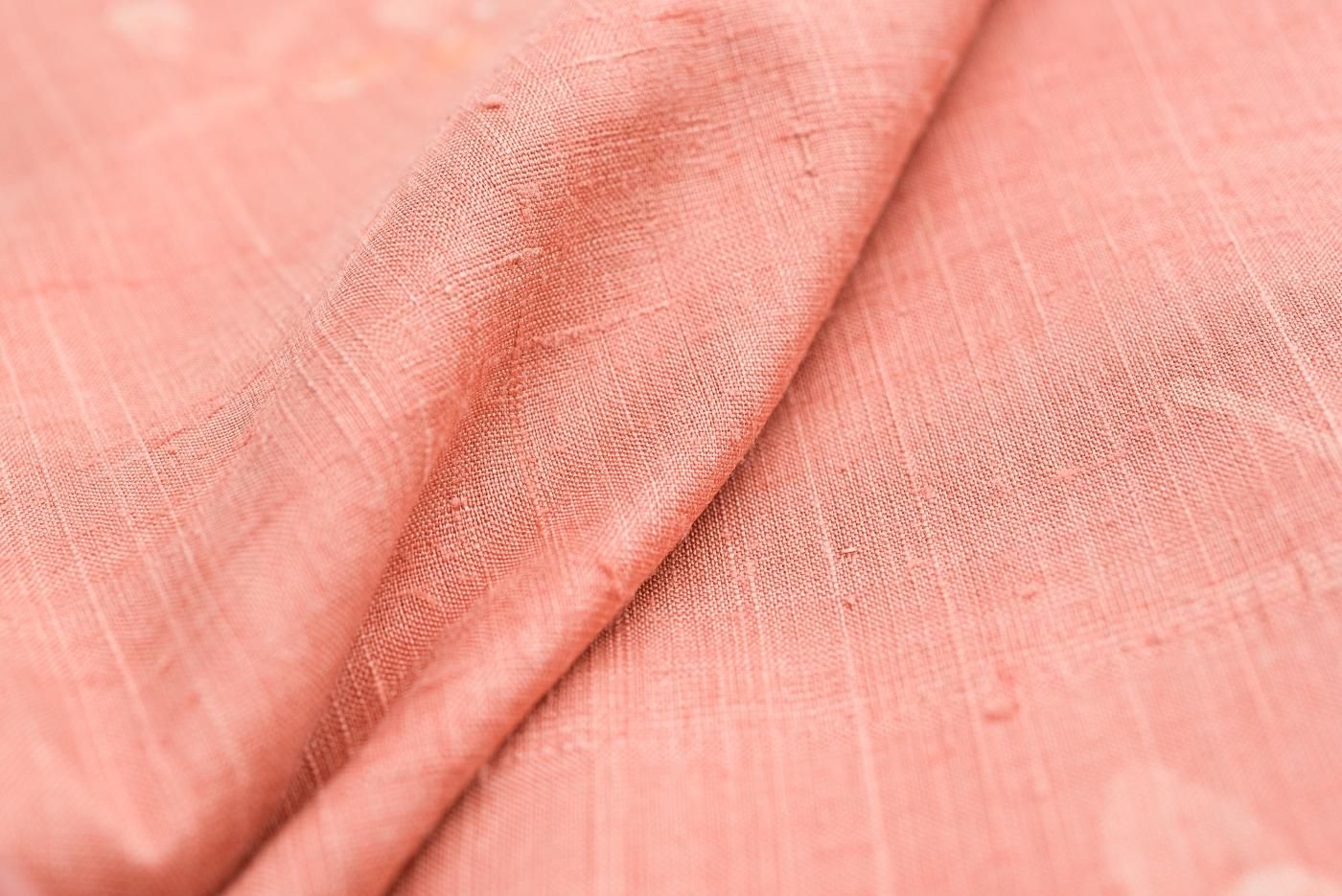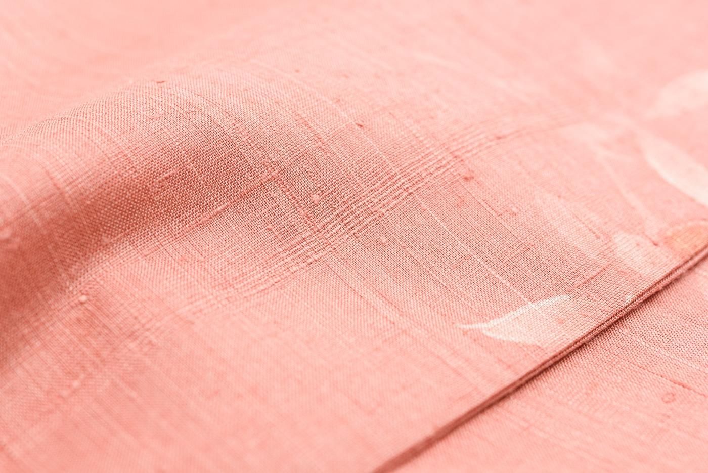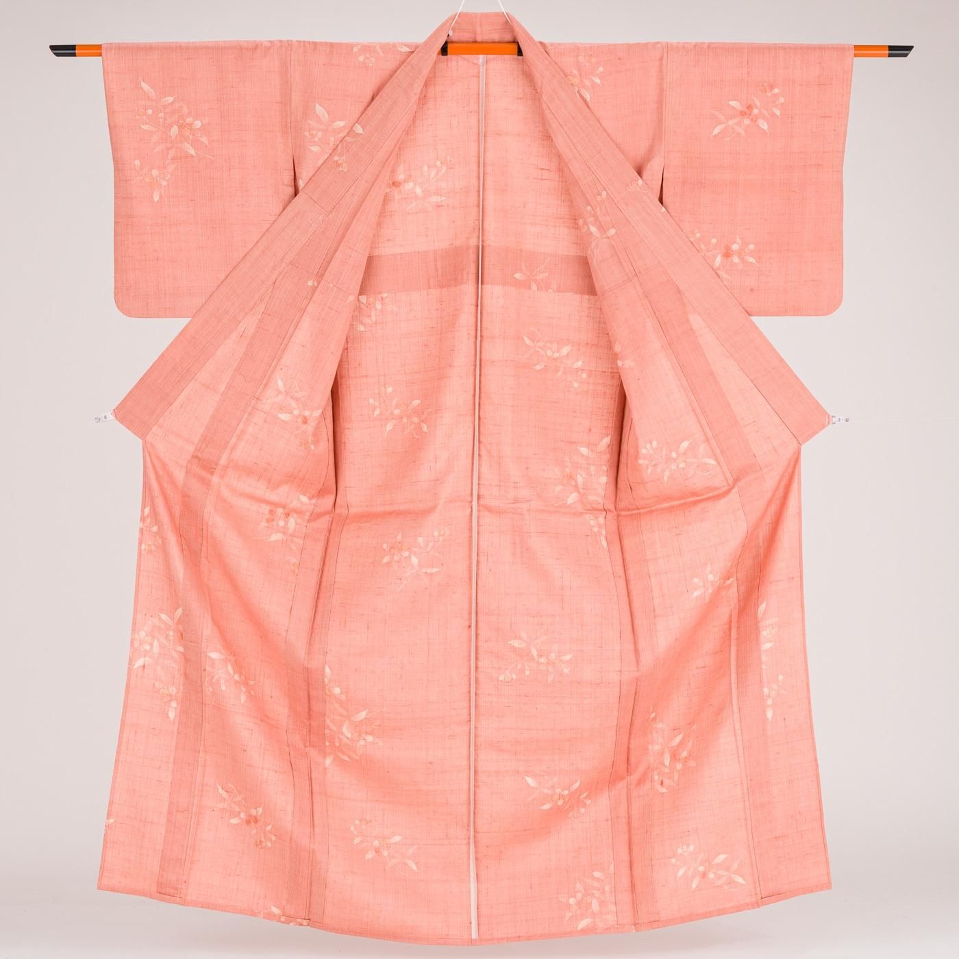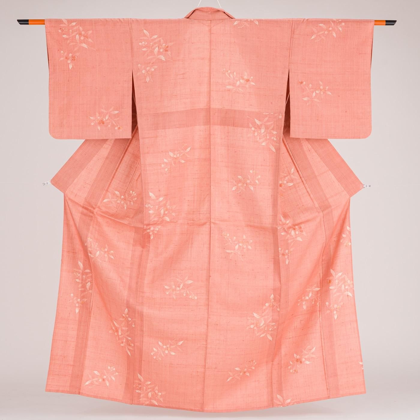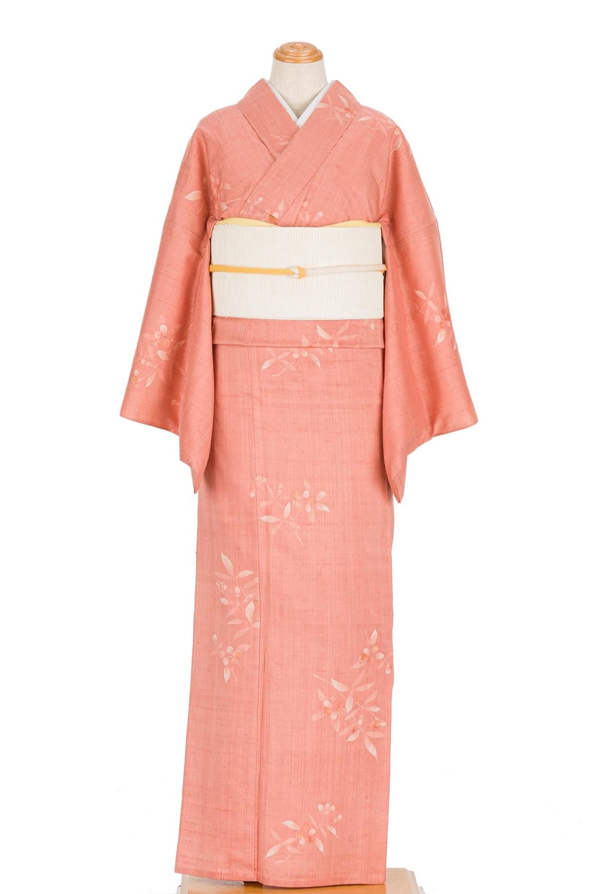 単衣 紬 浅緋色地 草花模様