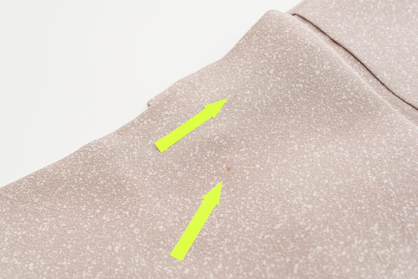 右前身頃、肩山下付近に茶の点染みがぽつぽつと見られます。