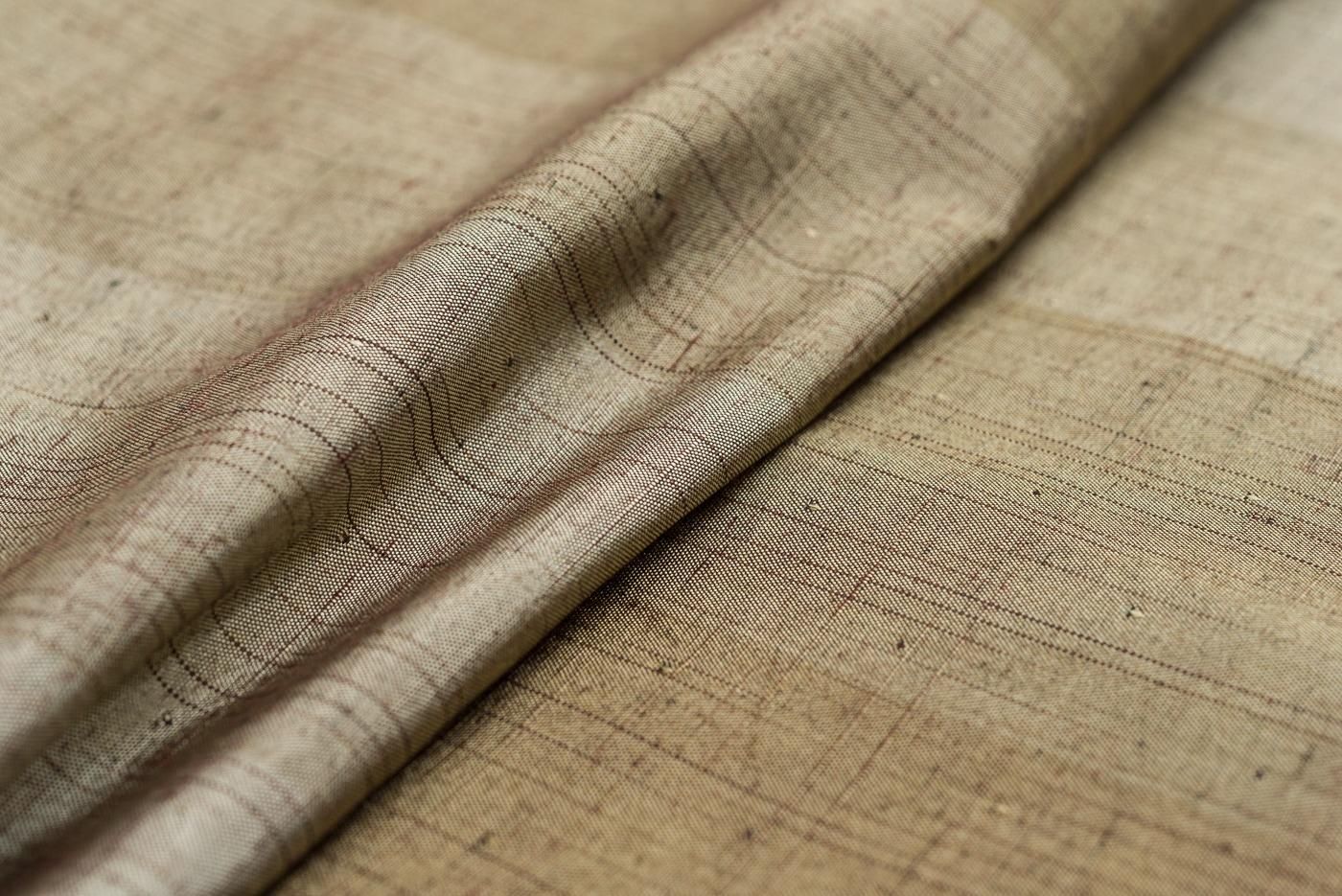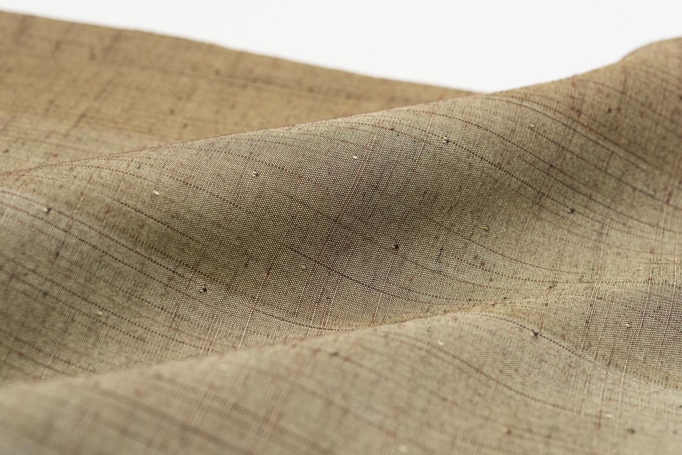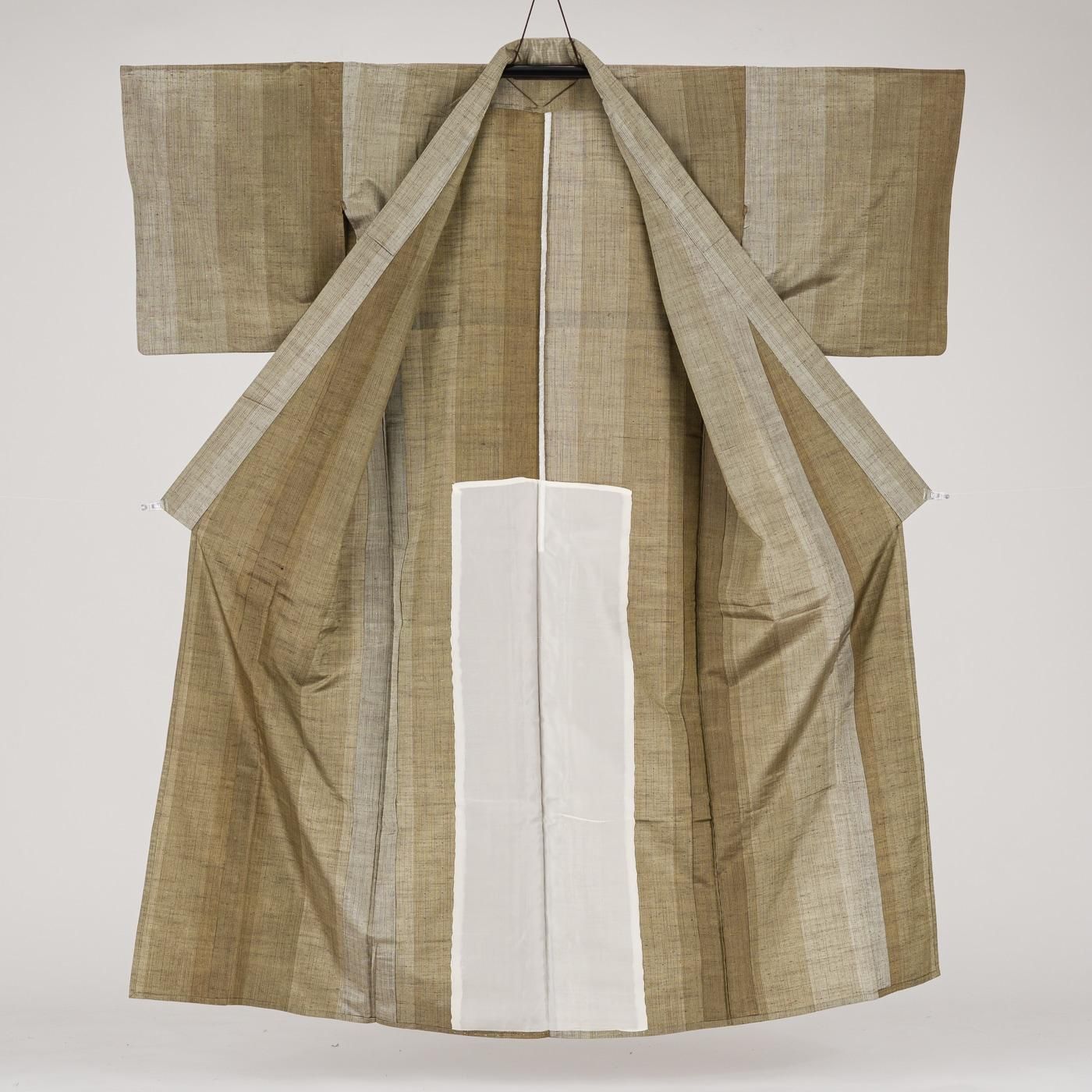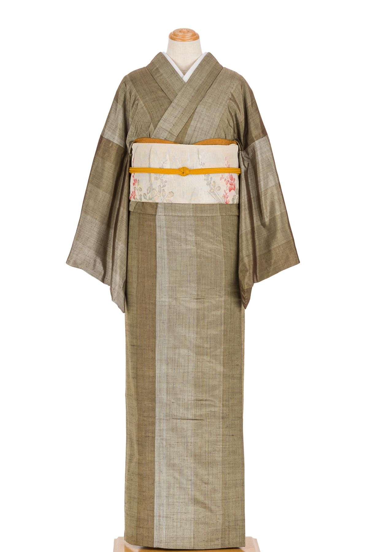 根岸色や菜種油色と言った風なお色目のグラデーションが素敵な単衣の紬です。
