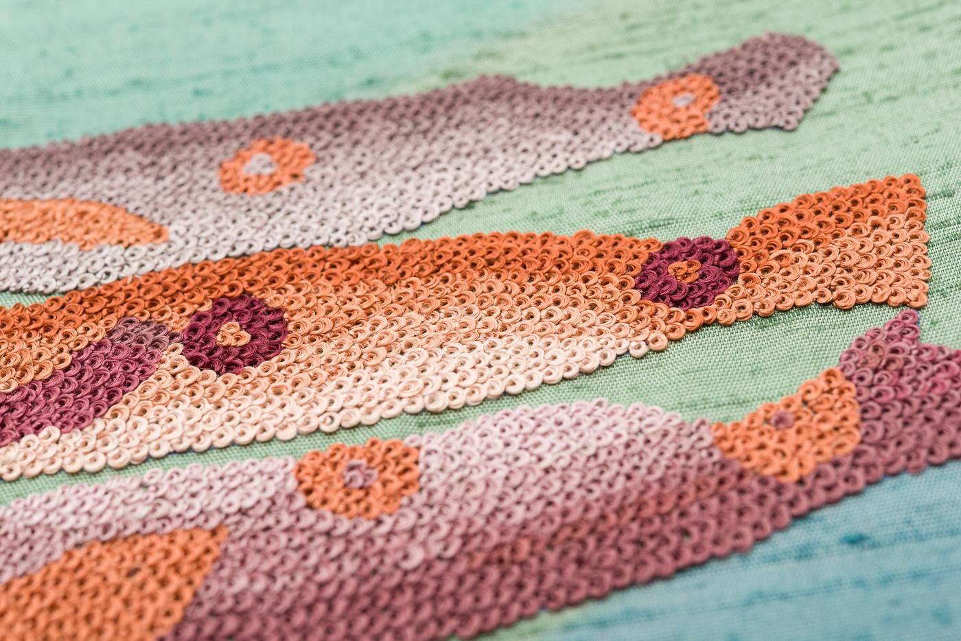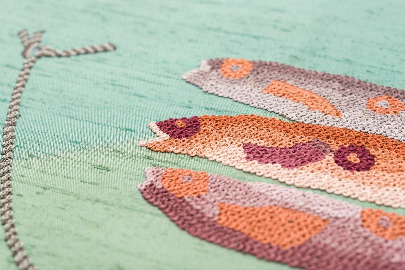 相良刺繍の効果で柄がふっくら立体的に見えますね。