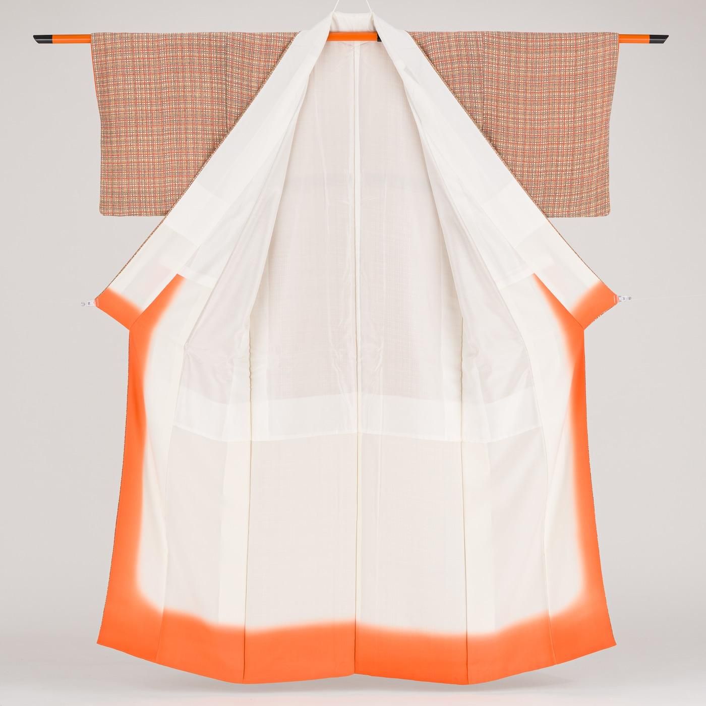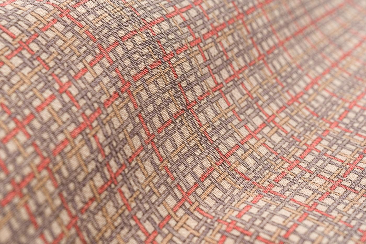 【売り切れ】 ベージュ地 縮緬 紐格子模様