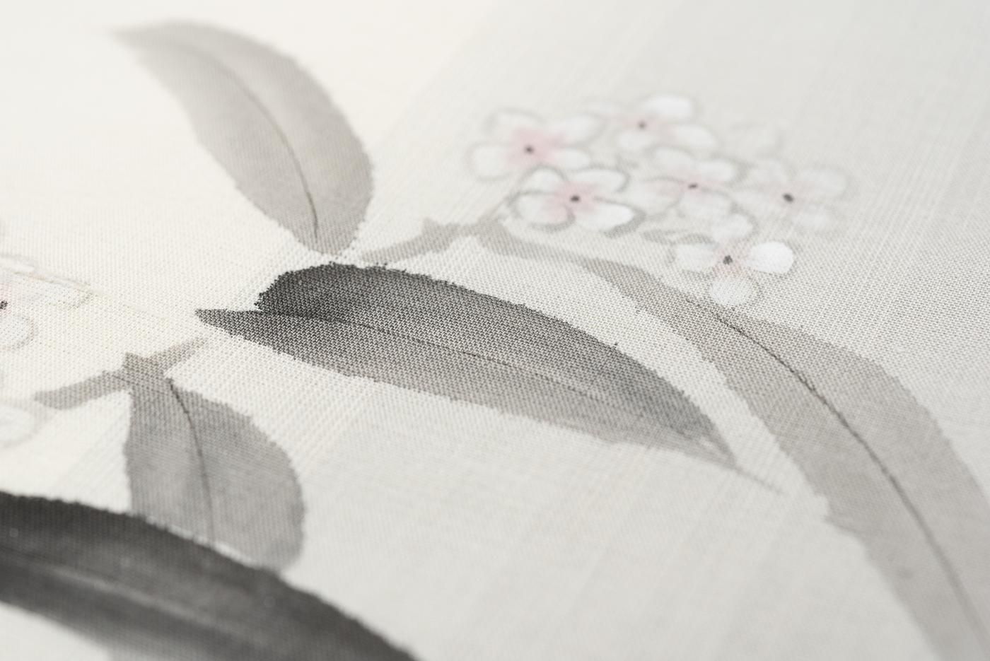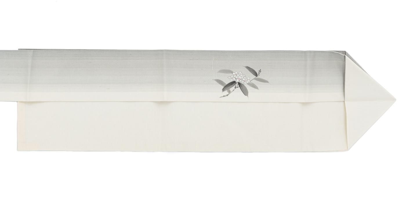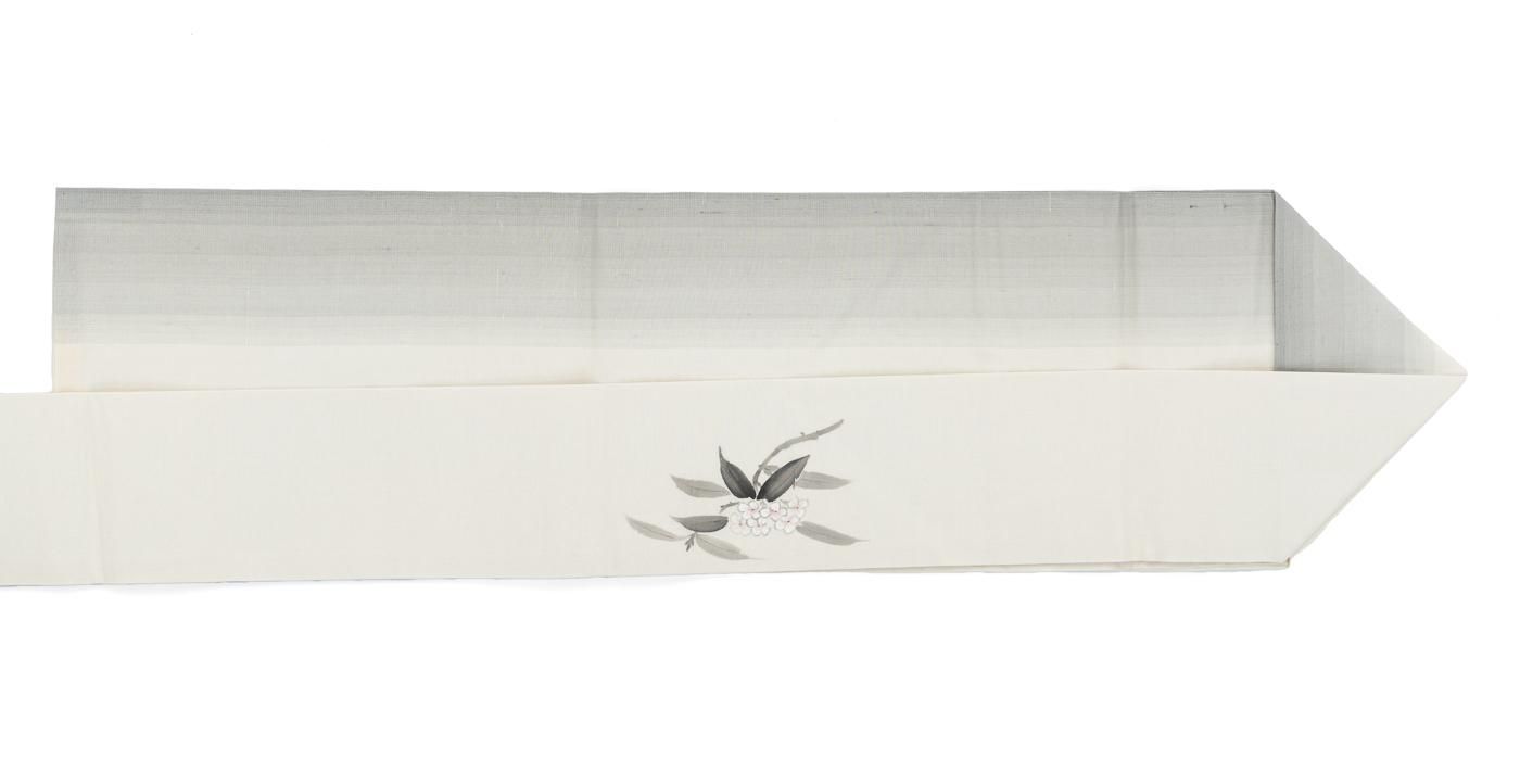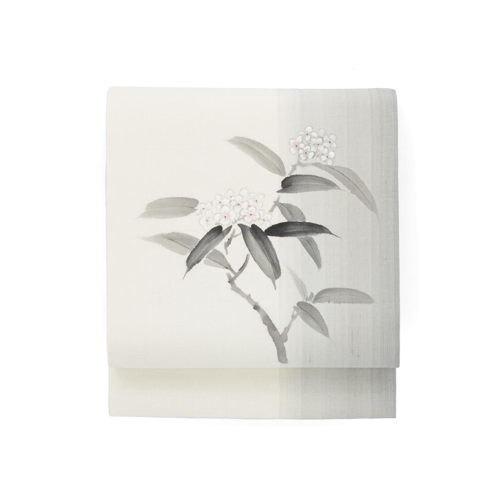 白い枝花を描いた紗紬の九寸名古屋帯です。