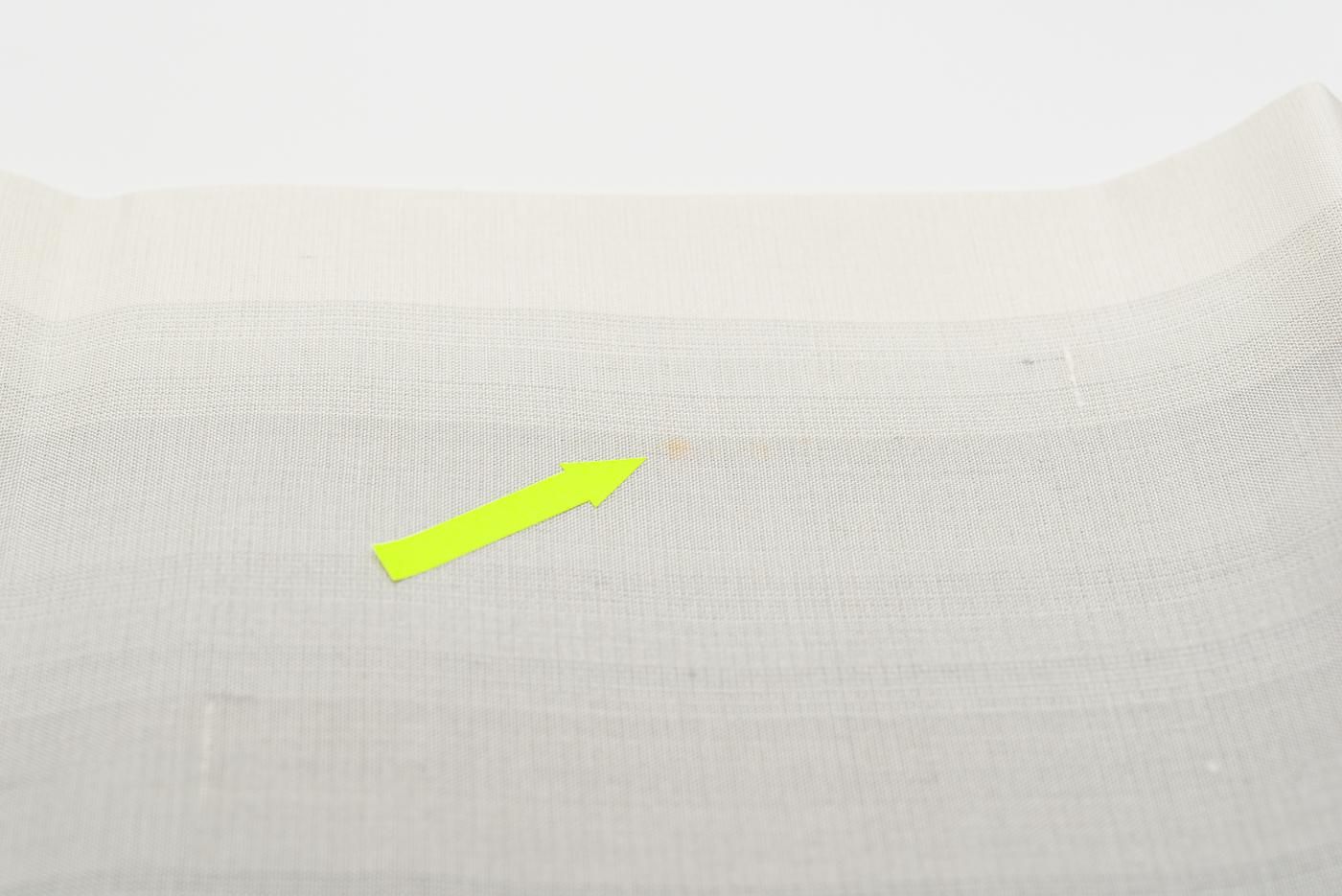 手先から約50cmの付近に画像のような小染みが1つありますが、こちらは締めた際には内側になり目立ちません。