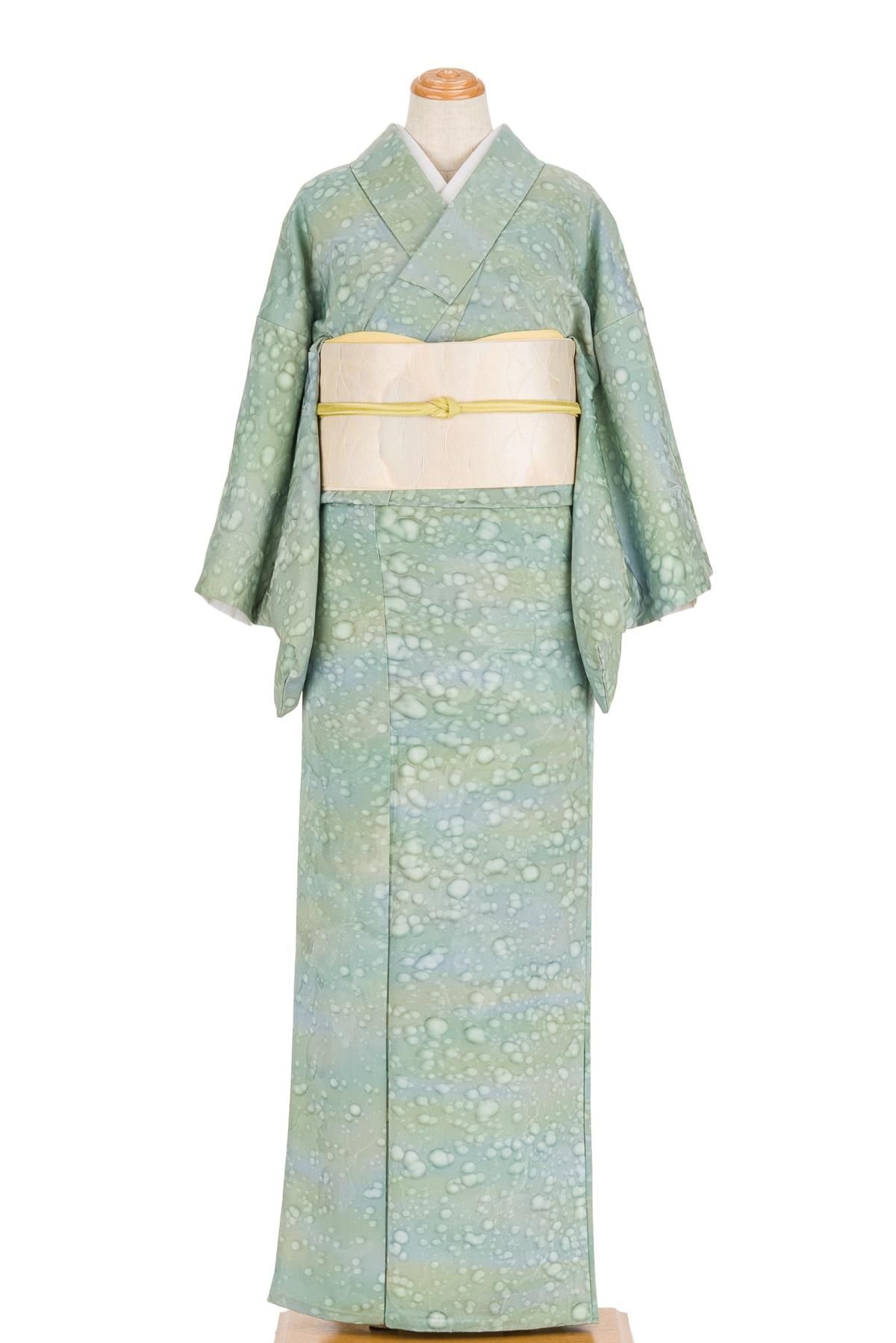 【売り切れ】 単衣 緑暈し 水滴のような斑柄