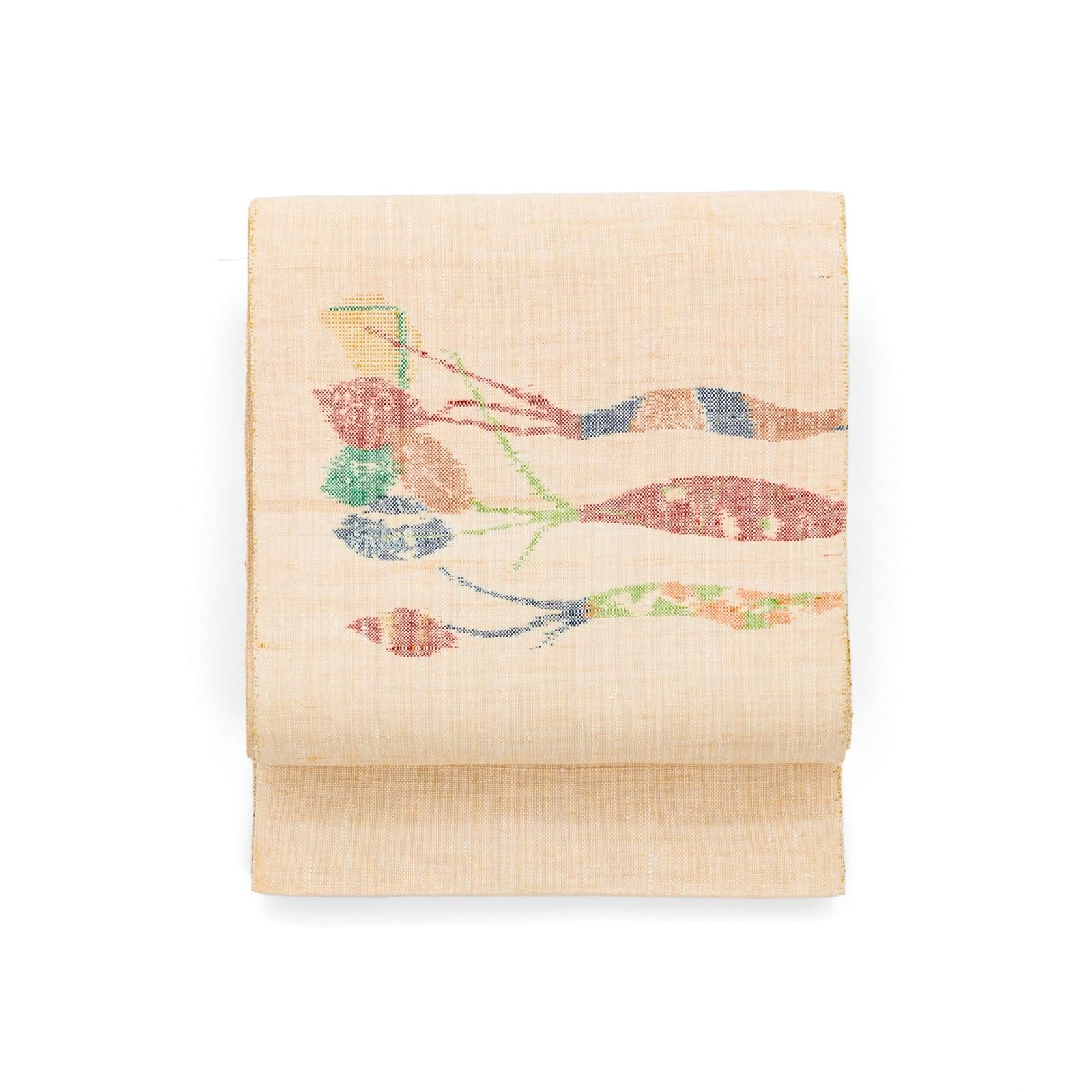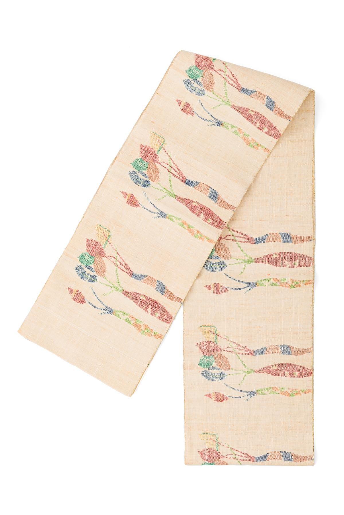 ひょろっと横長の野菜を織り出した紬の八寸名古屋帯です。
