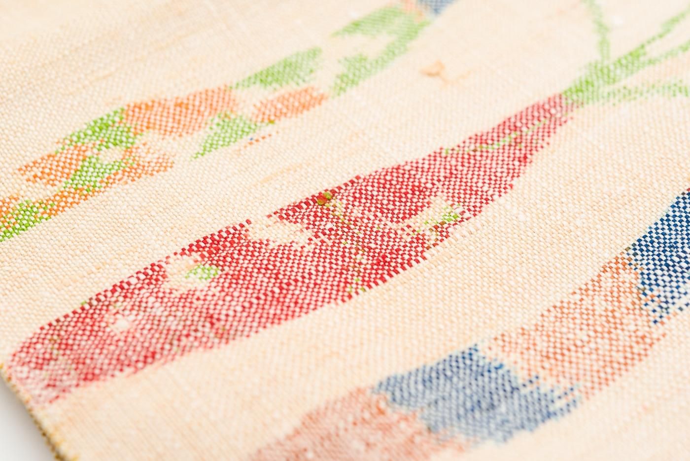 【売り切れ】 紬 ベージュ地 細長い野菜