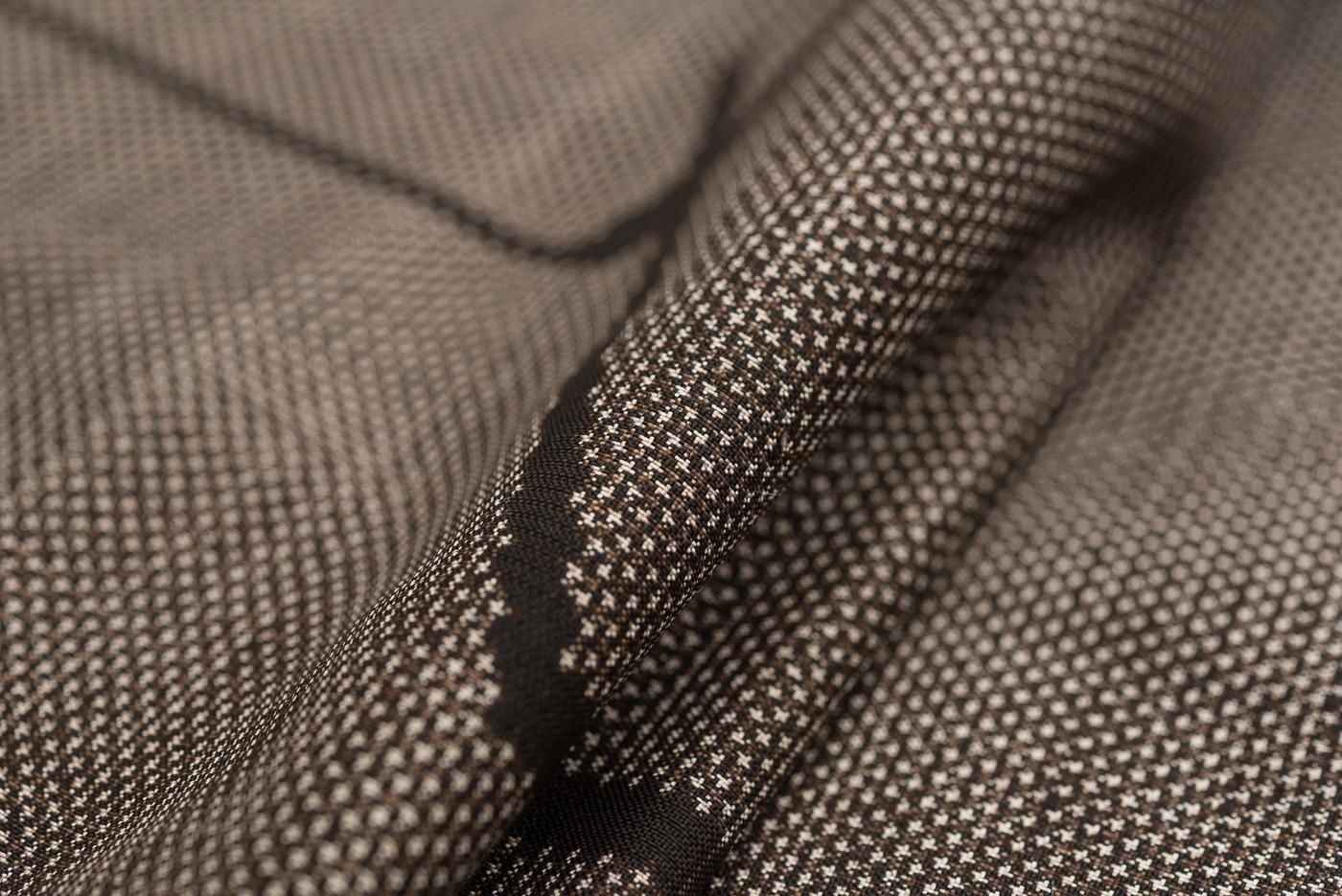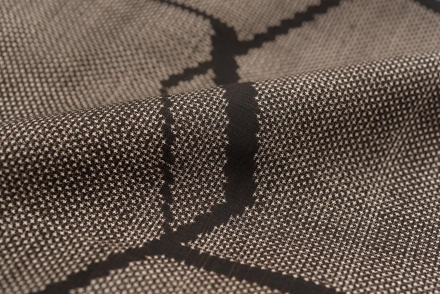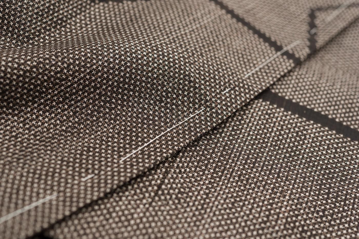 細いラインの亀甲模様を織り出した大島紬の着物です。