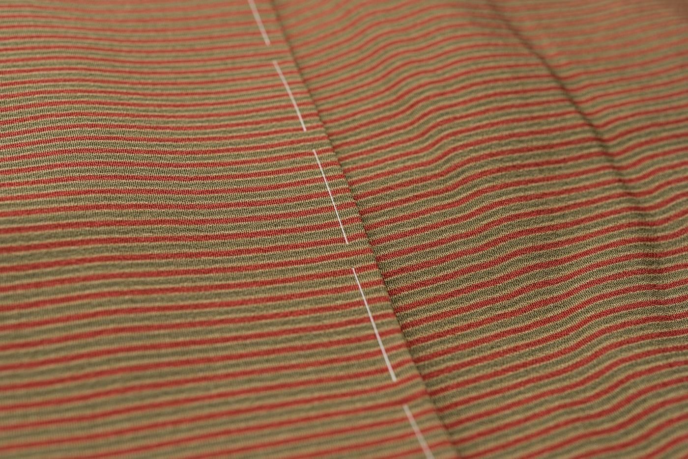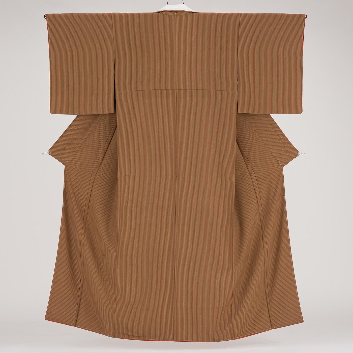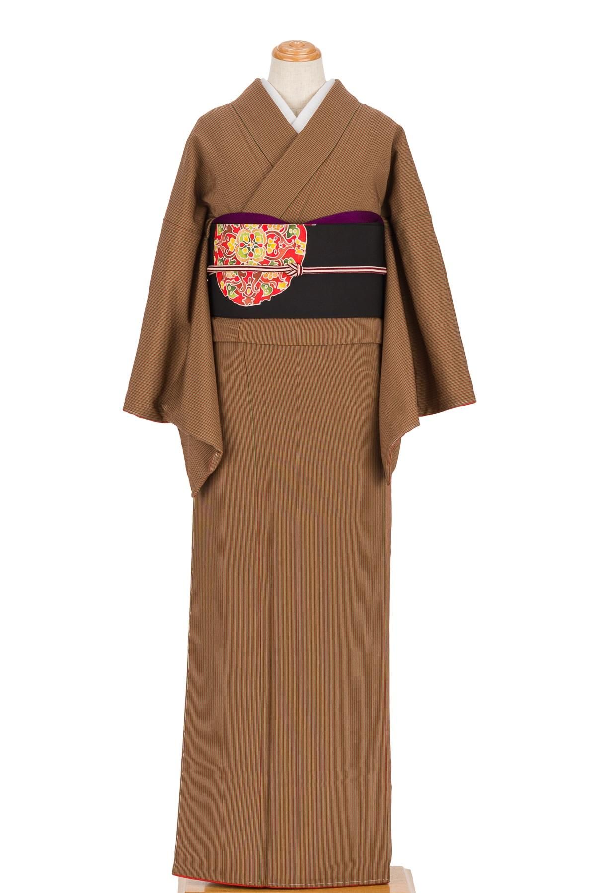 二色の茶の縞模様を染めた小紋の着物です。