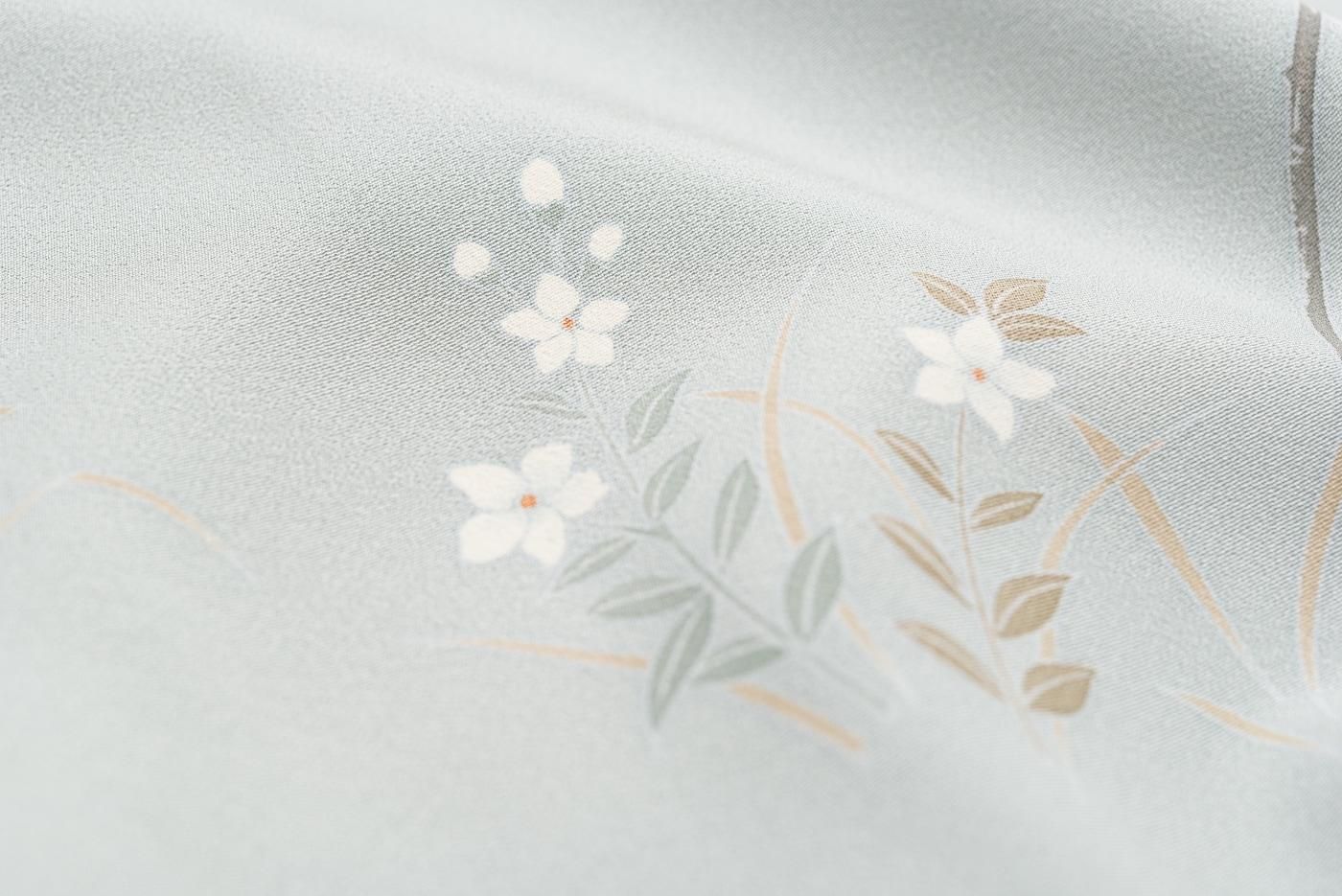 【売り切れ】 訪問着 青磁鼠 手描き枝花 作家物