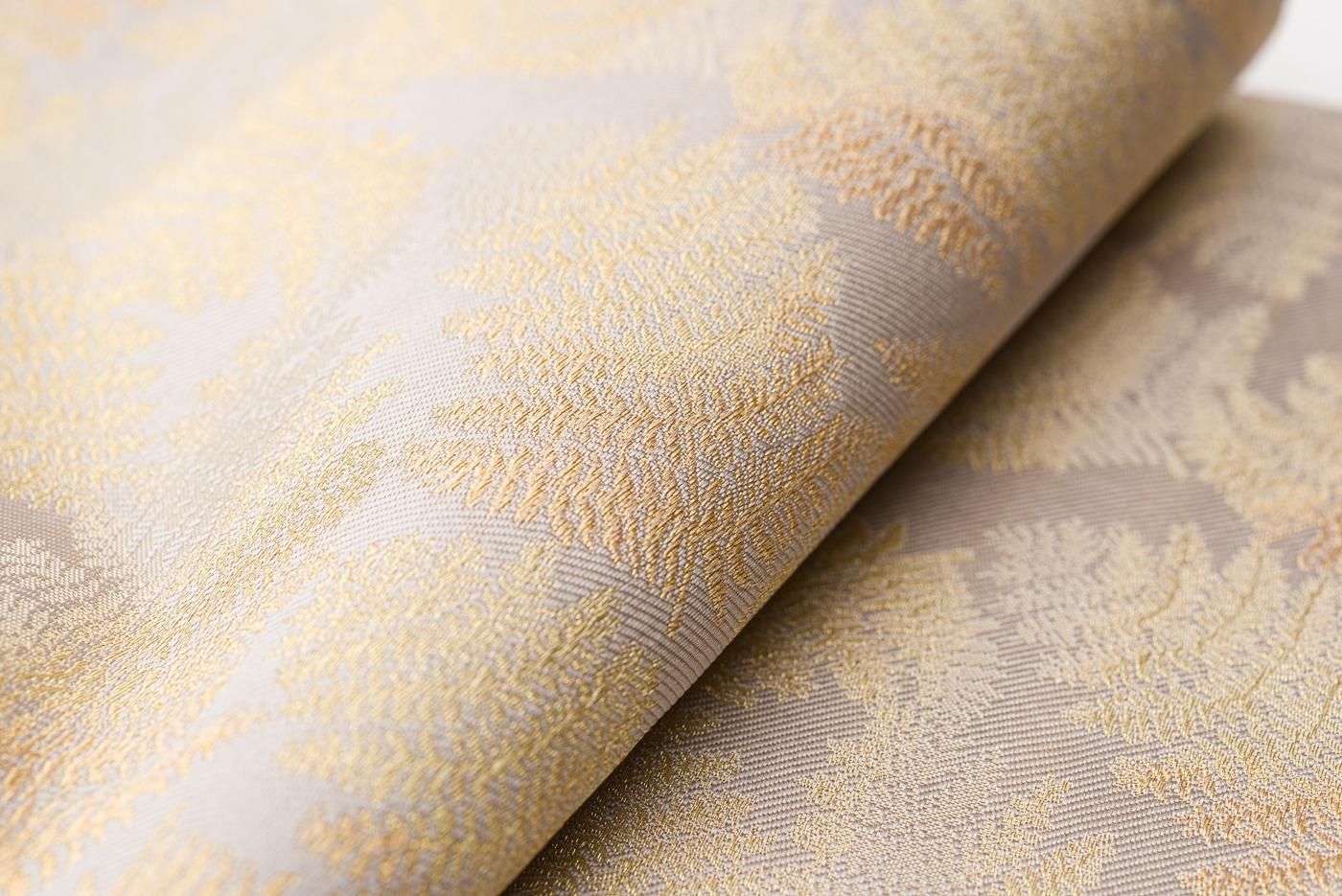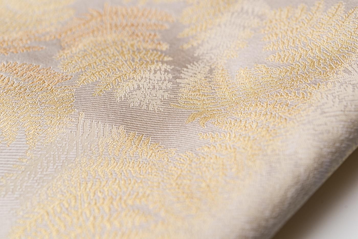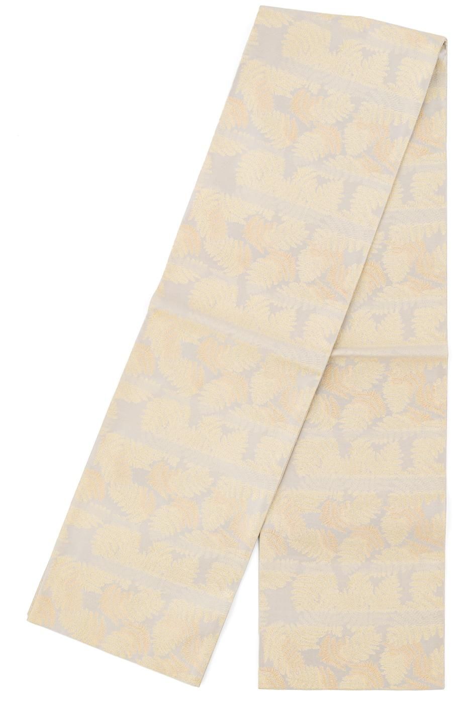 シダのような葉模様を織り出した全通の袋帯です。