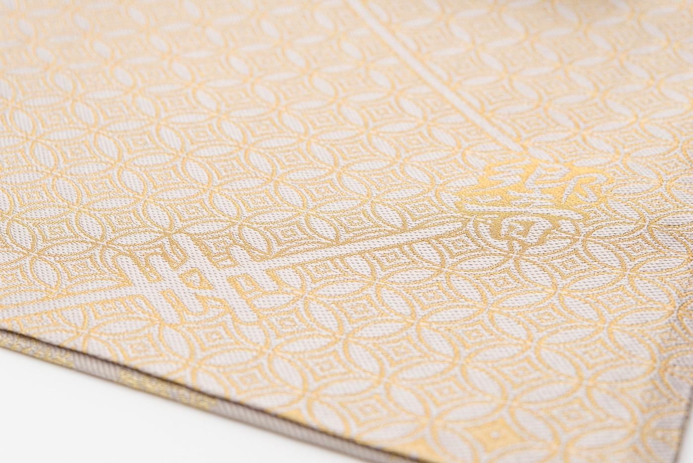 裏面には葉と同じ金色で七宝模様が織り出されています。