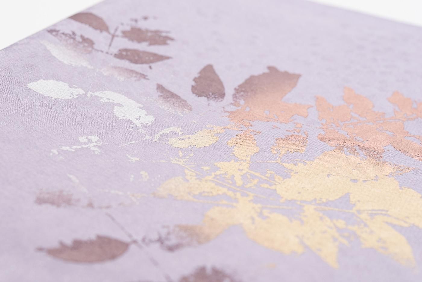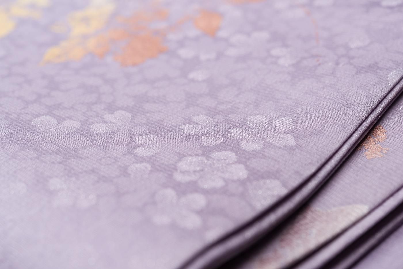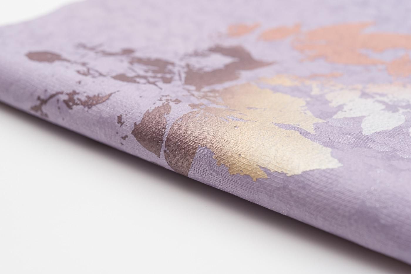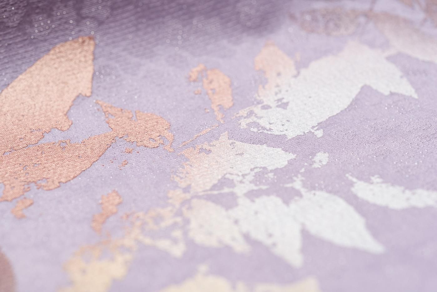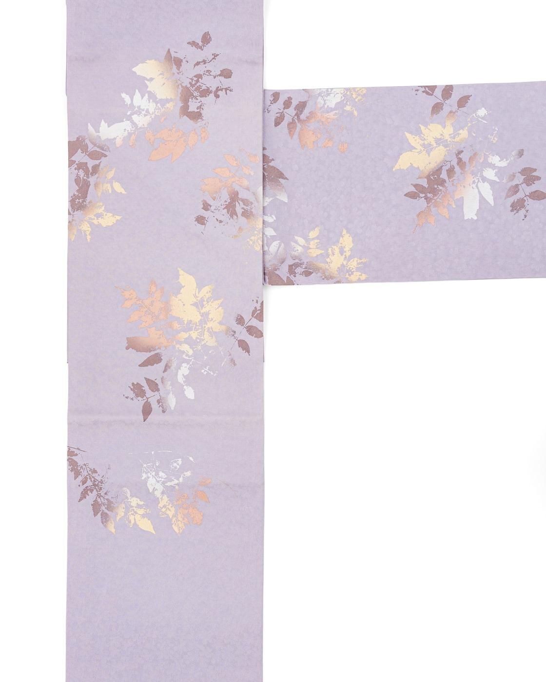 きらっと輝く箔置きの葉模様が美しい袋帯です。