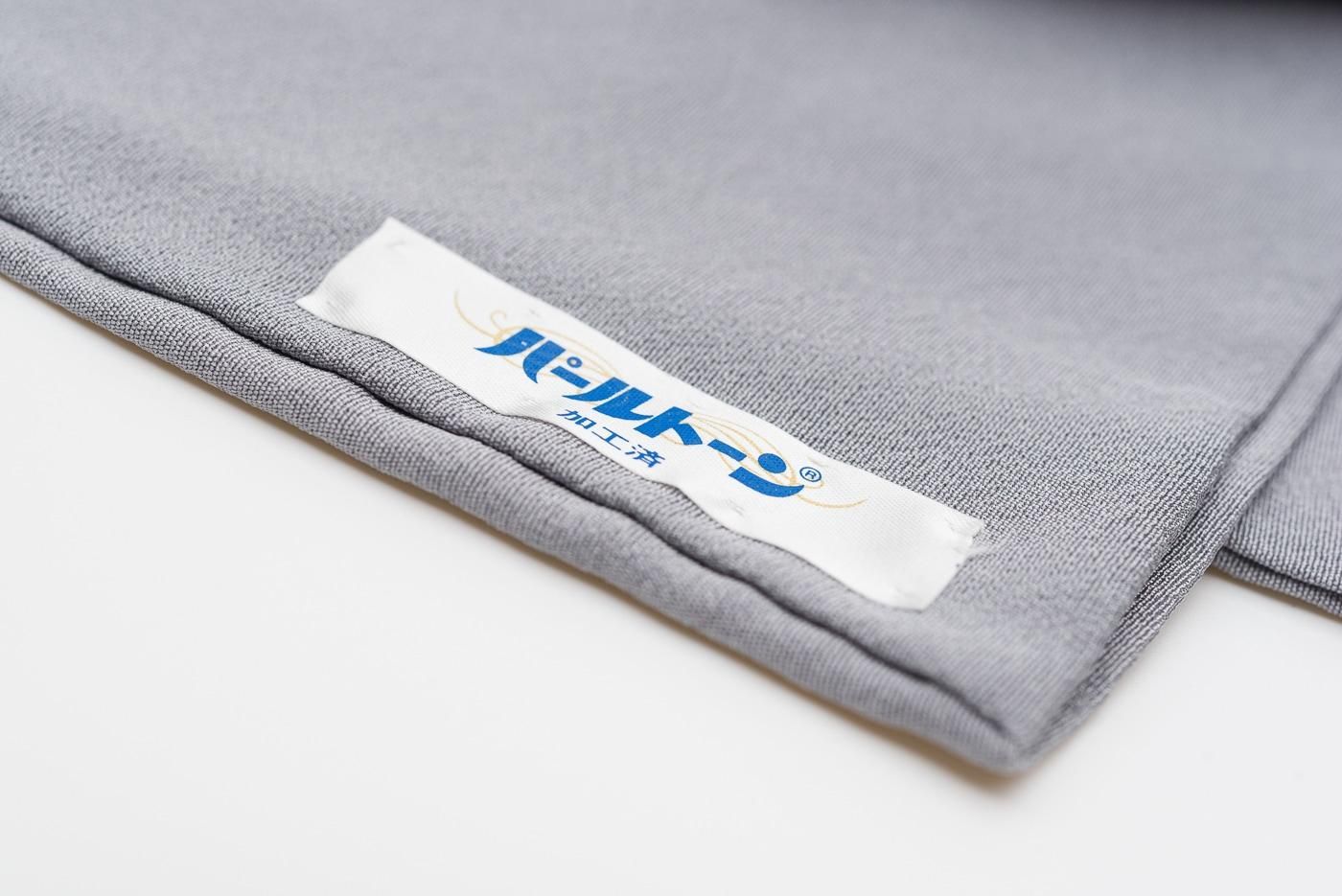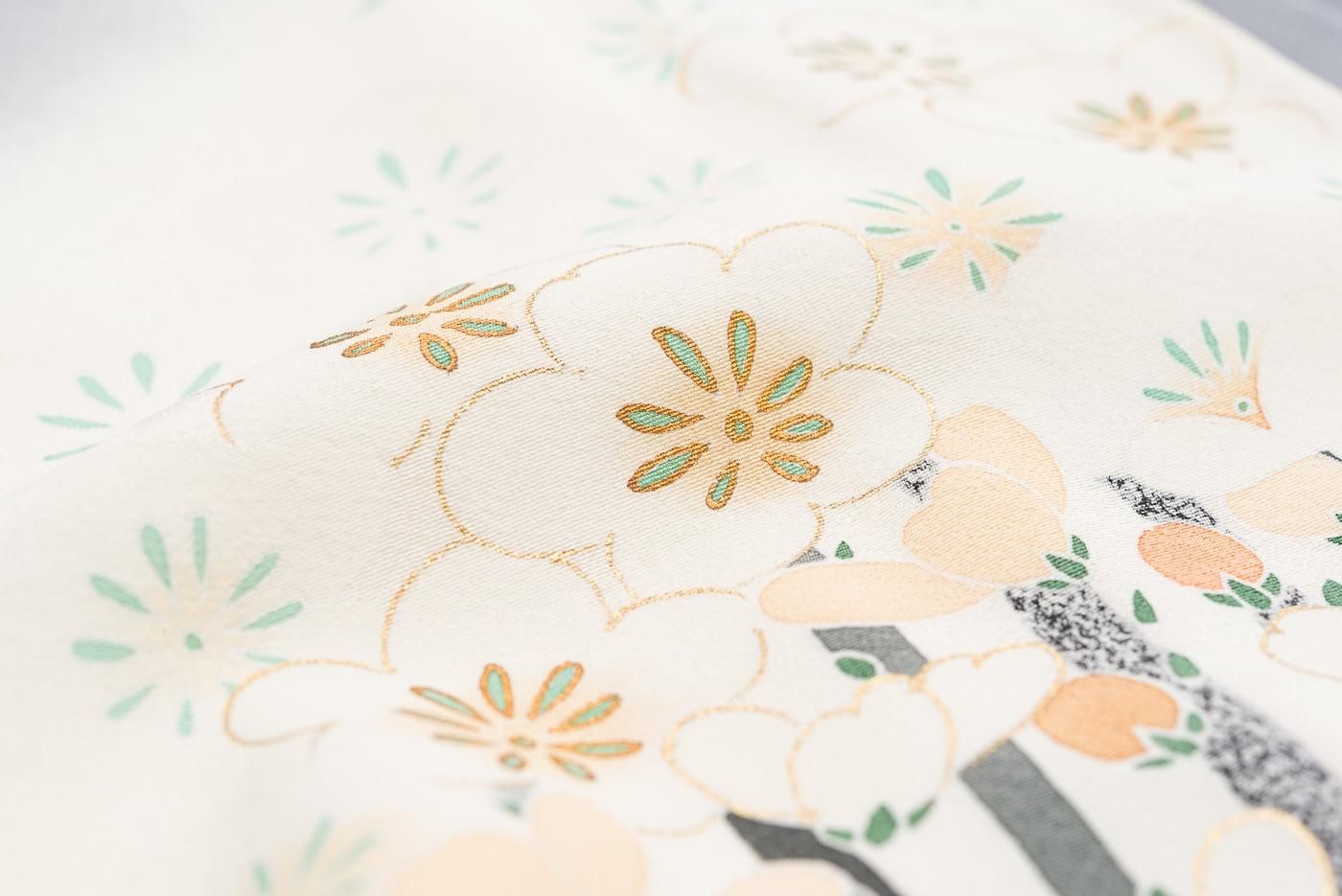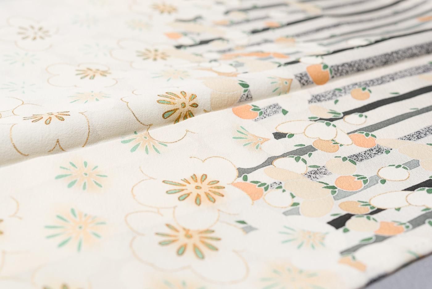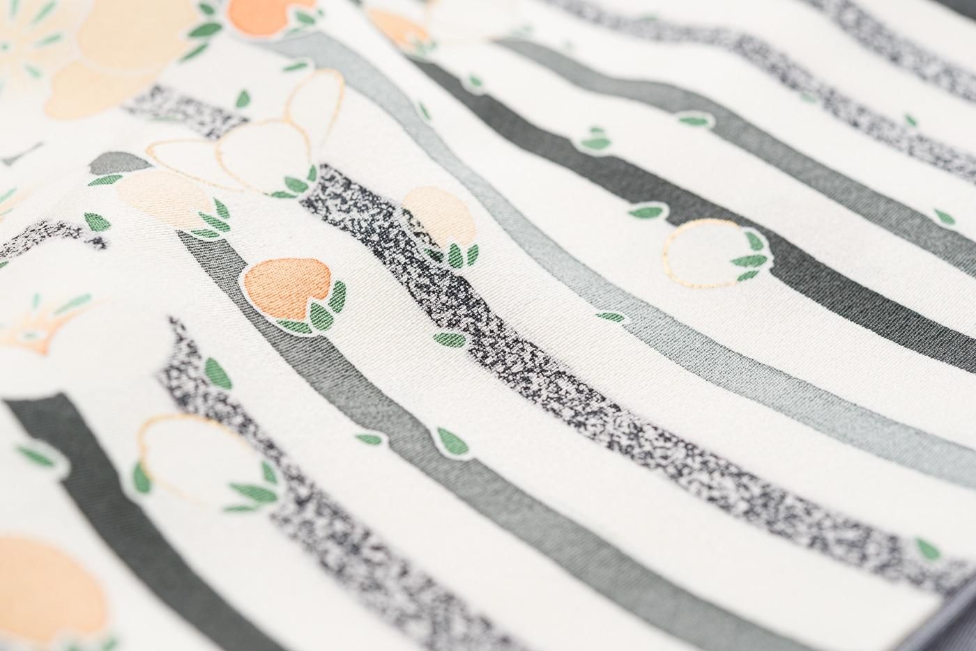 裾に広がるモノトーンの縞がキリリと良いアクセントになっています。