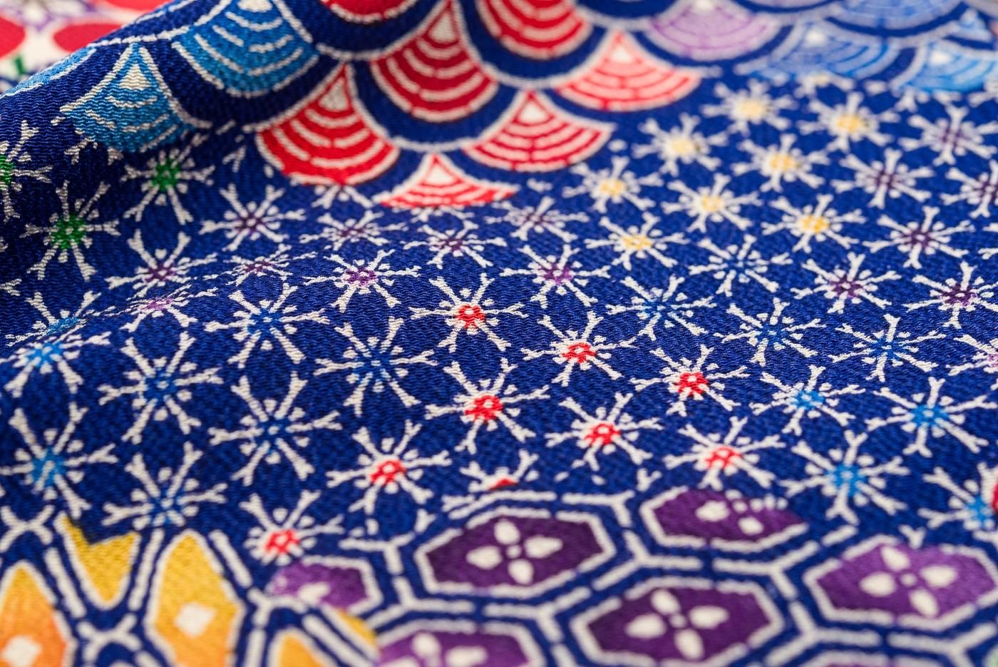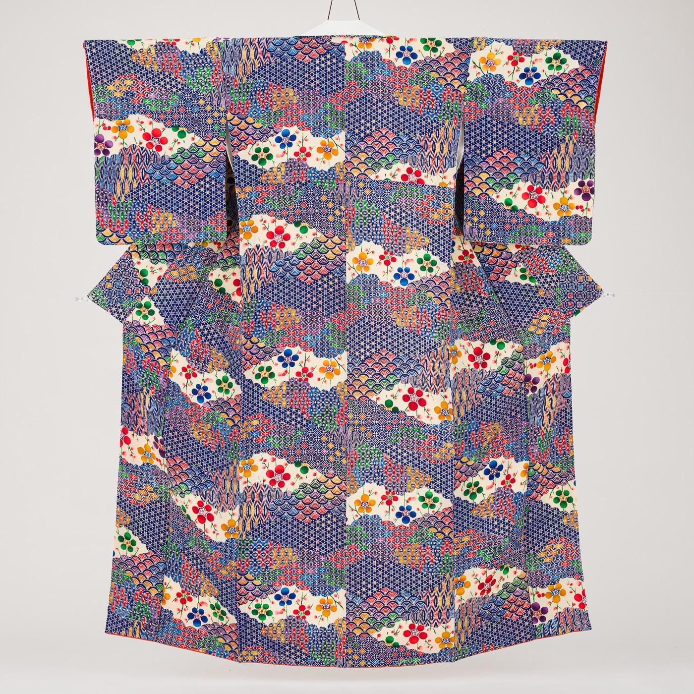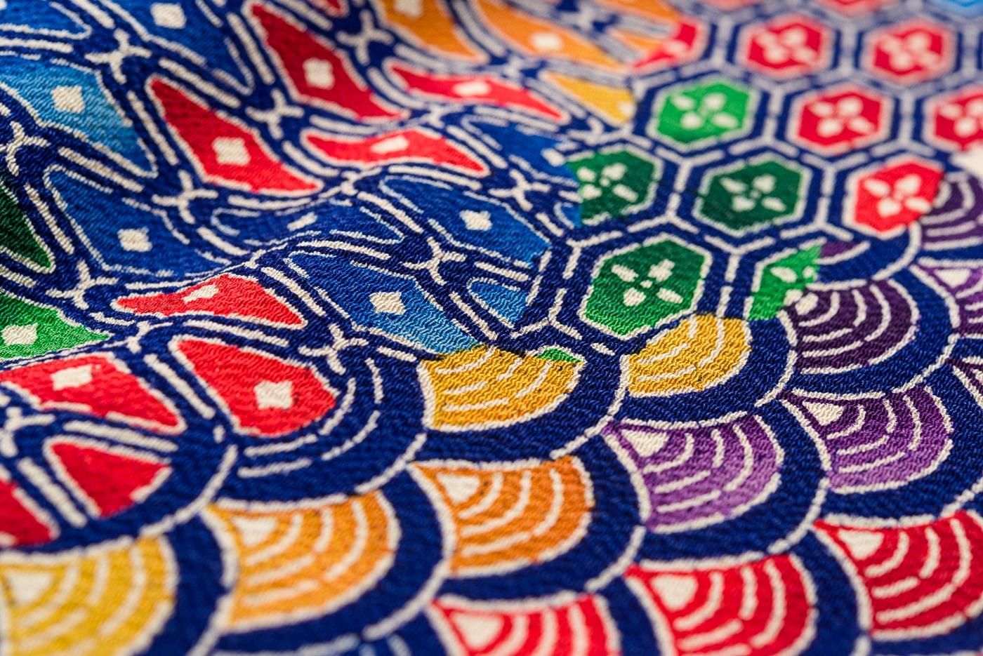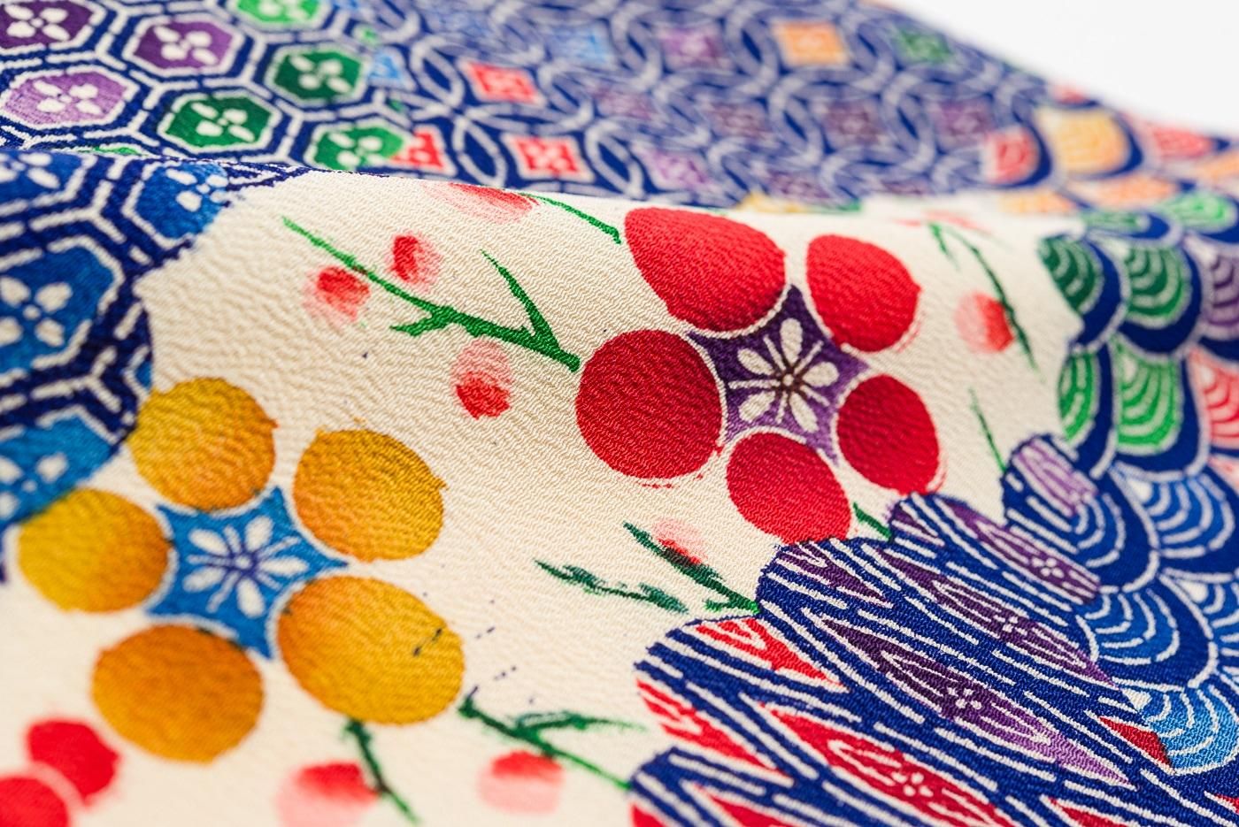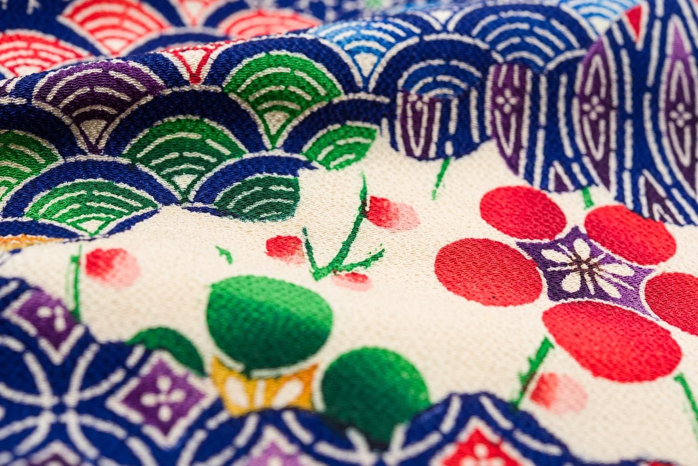 梅以外にも青海波、七宝、亀甲などの古典柄がそこかしこに散らばって、なんともポップで華やか。