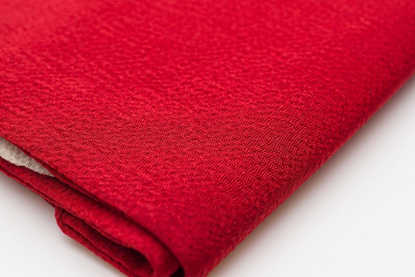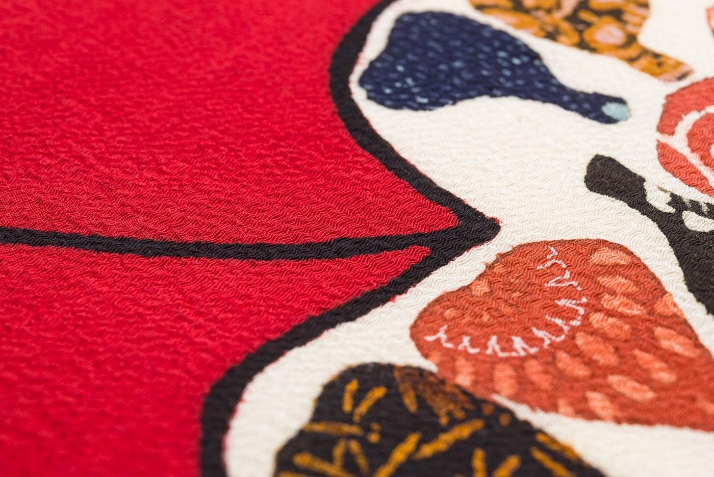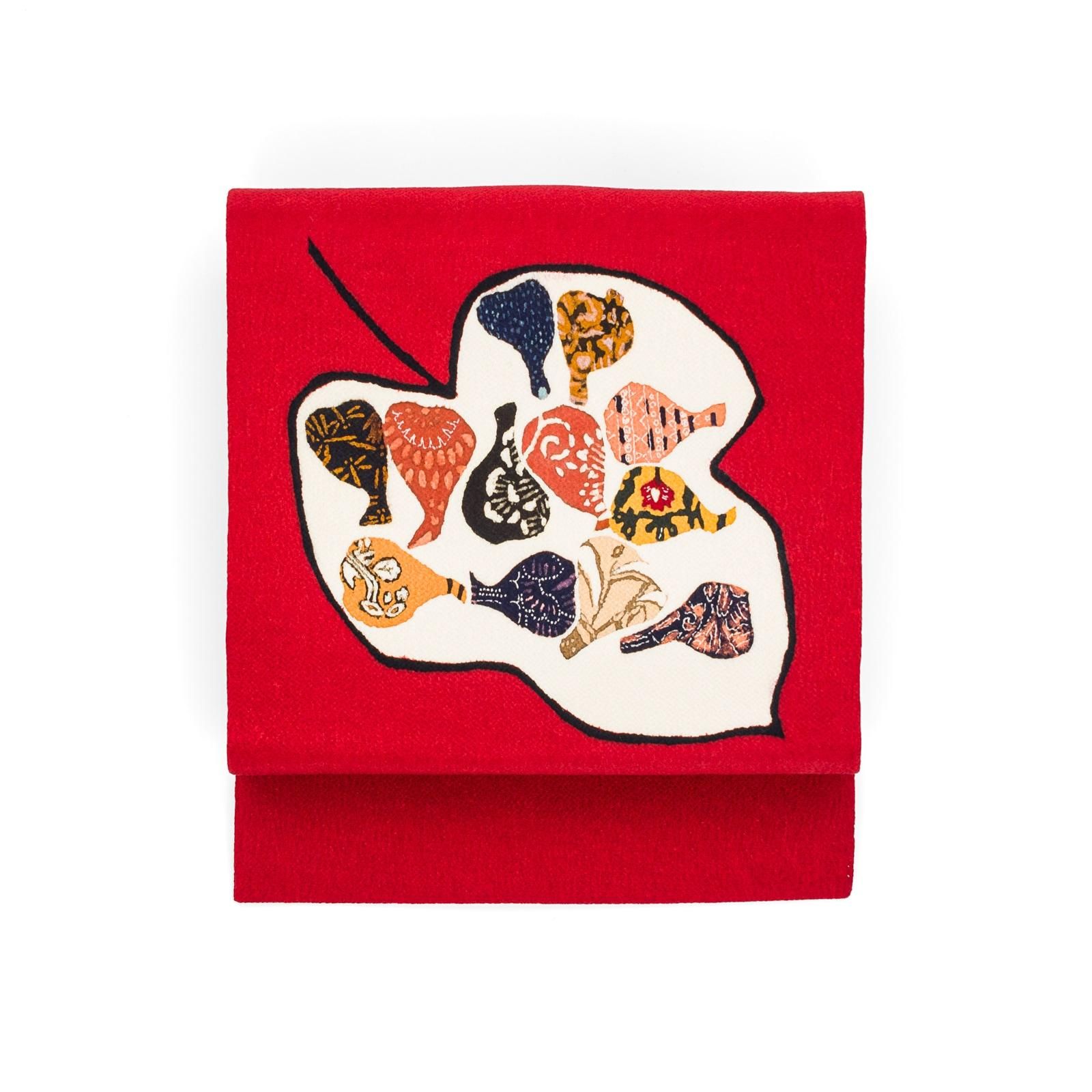 こっくりとした赤い縮緬地に無花果を染めた九寸名古屋帯です。