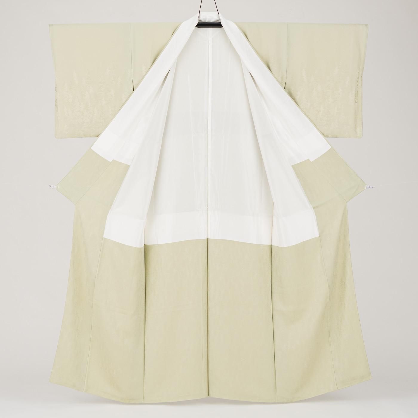 【売り切れ】 色無地 一つ紋 木々模様 ゆったりサイズ