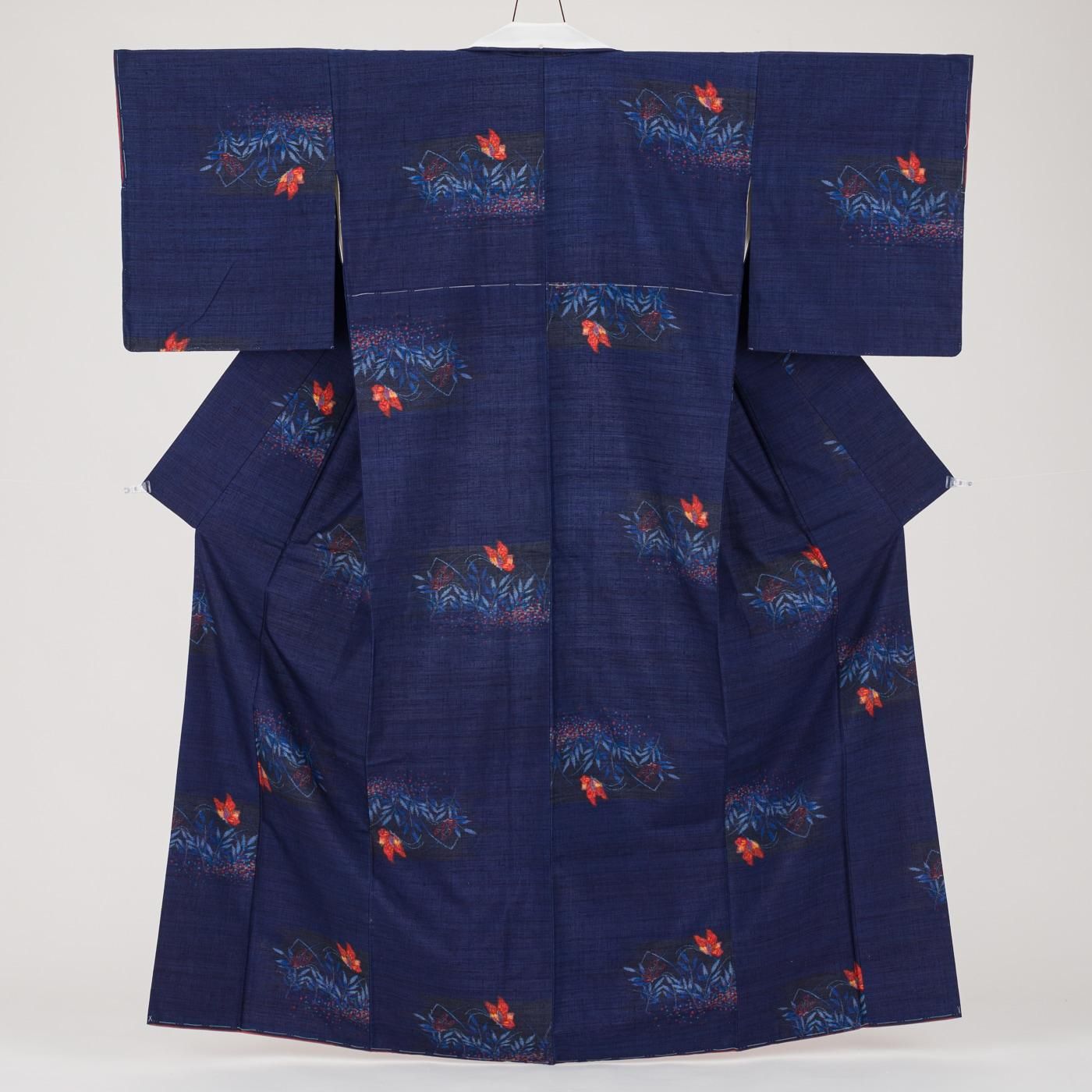 草葉の周りを舞う蝶が愛らしい紬の着物です。