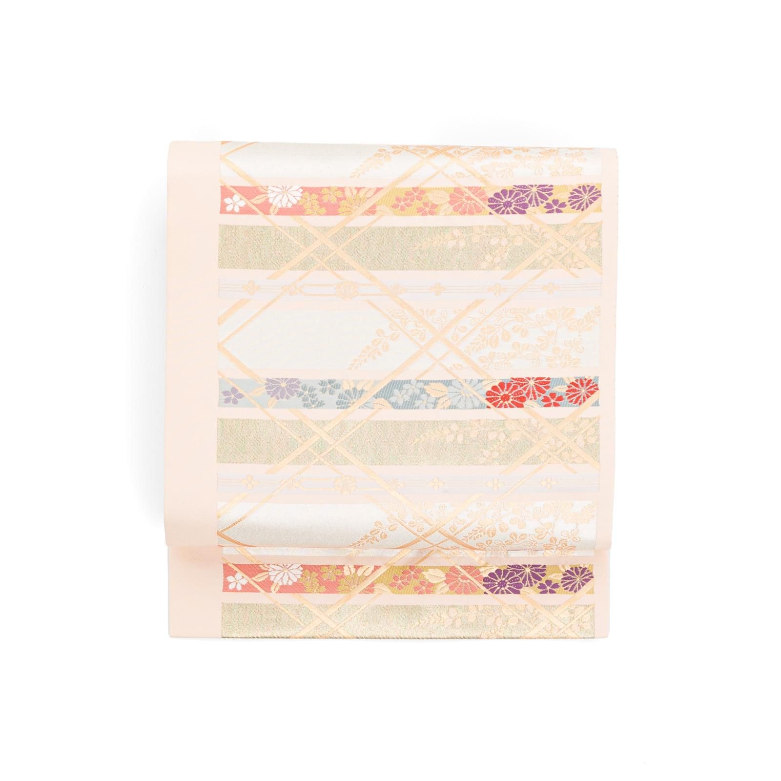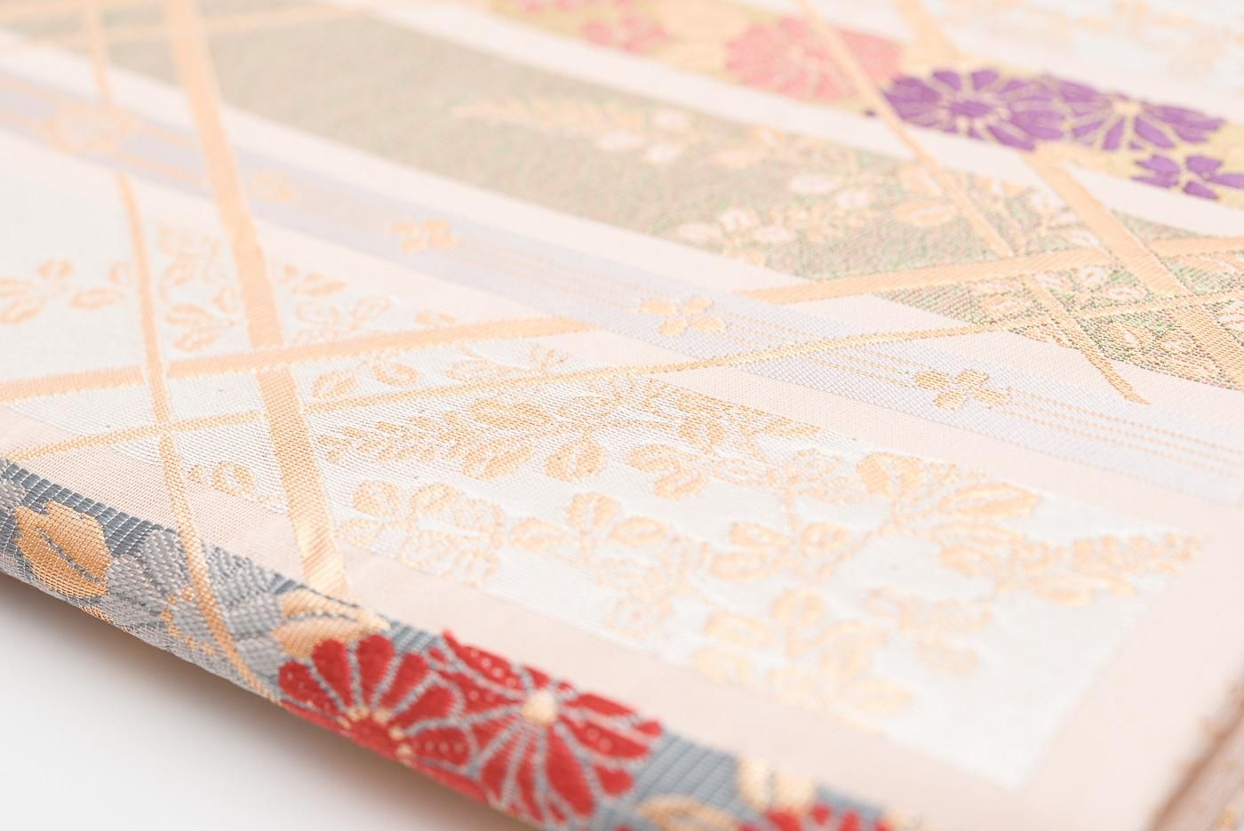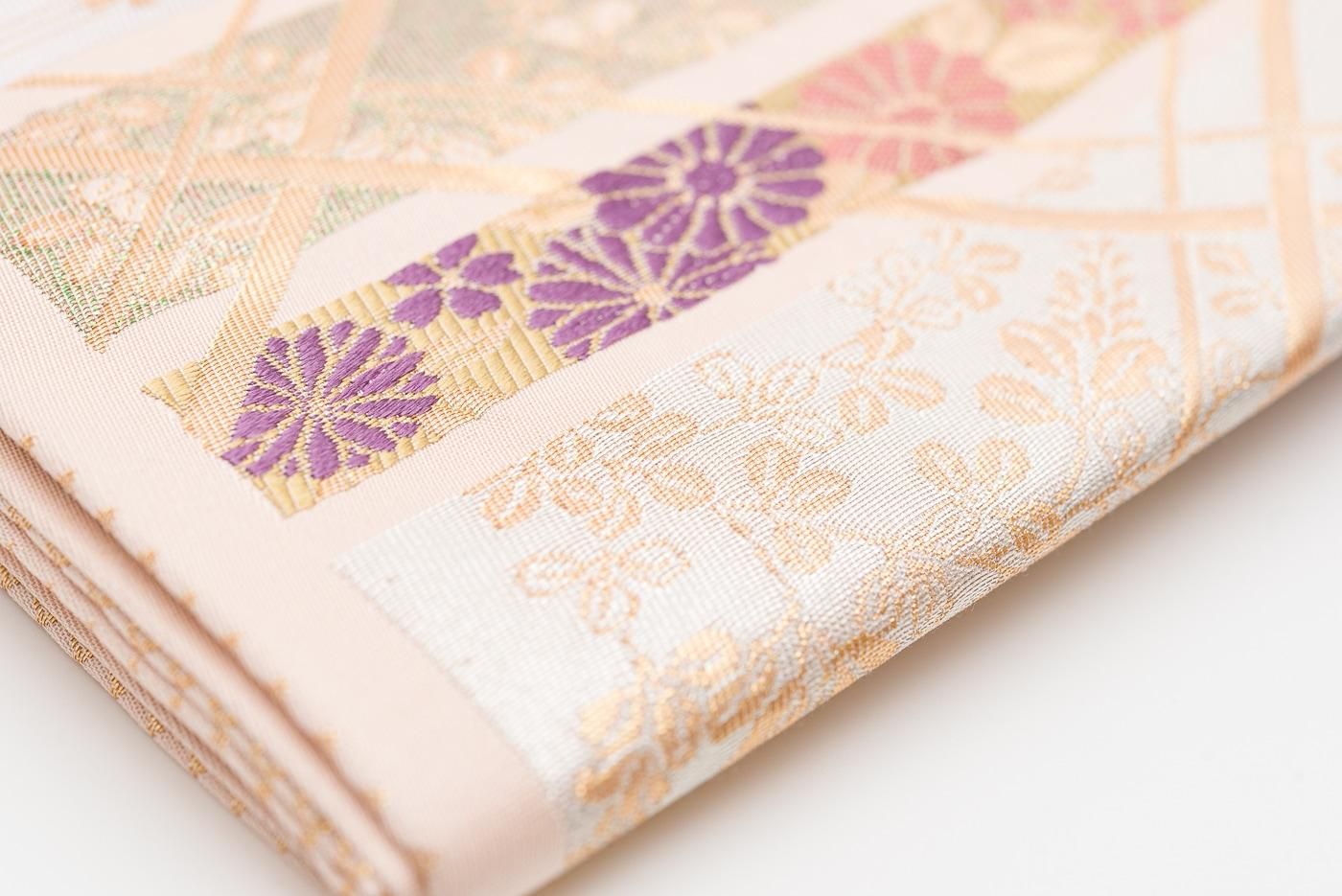 細いラインの中に菊の花を織り出した九寸名古屋帯です。
