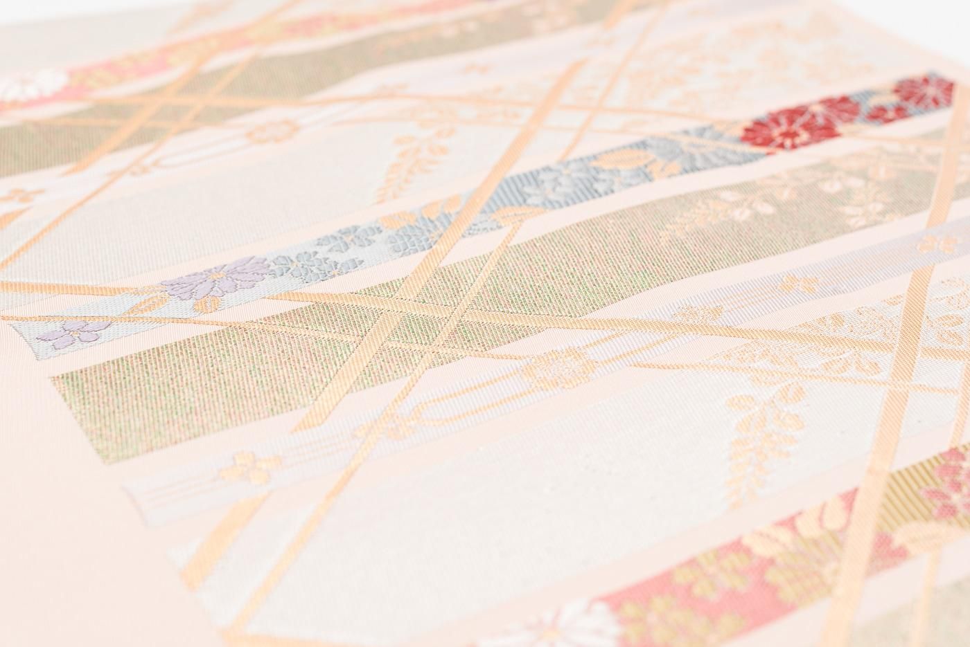 柄にかぶせた斜めの格子柄が華やかなアクセントになっています。