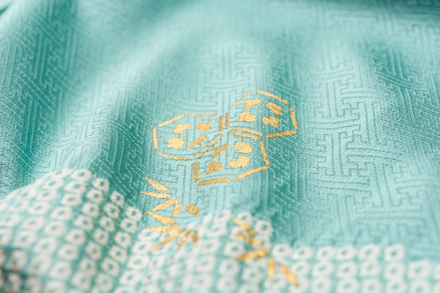 斜めに配した鹿の子絞りの柄が大胆で印象的ですね。