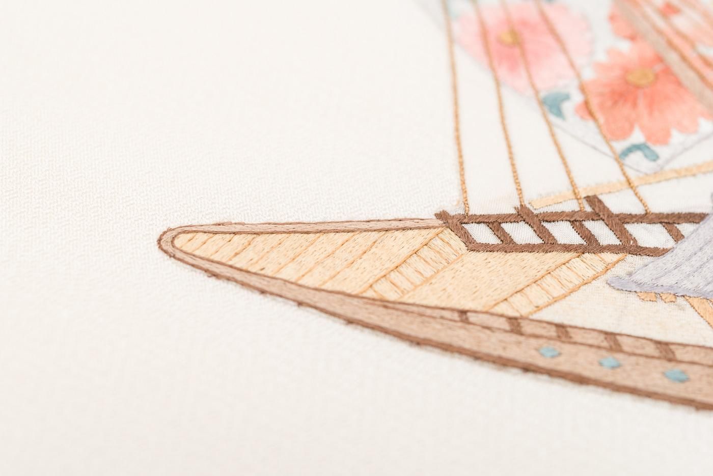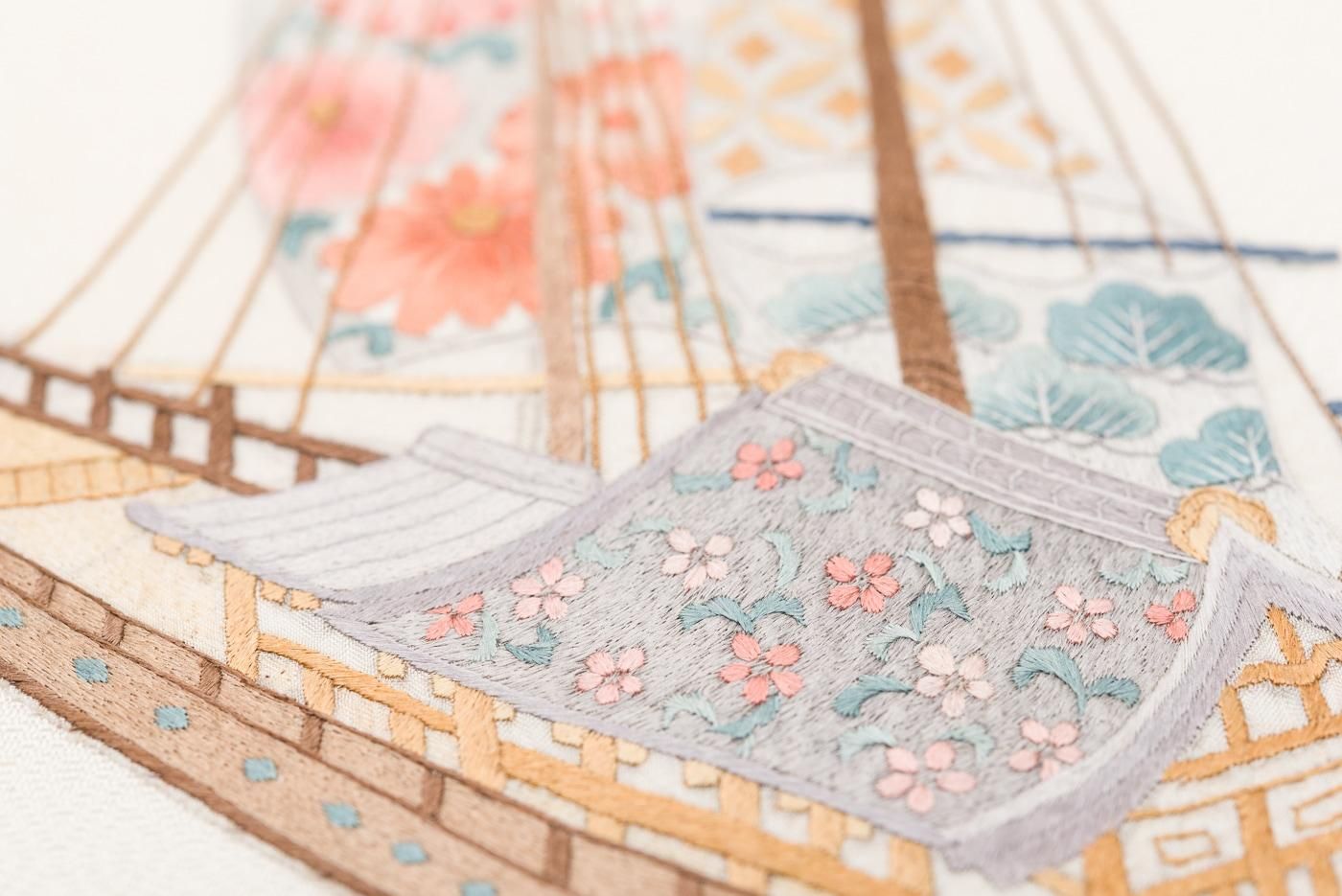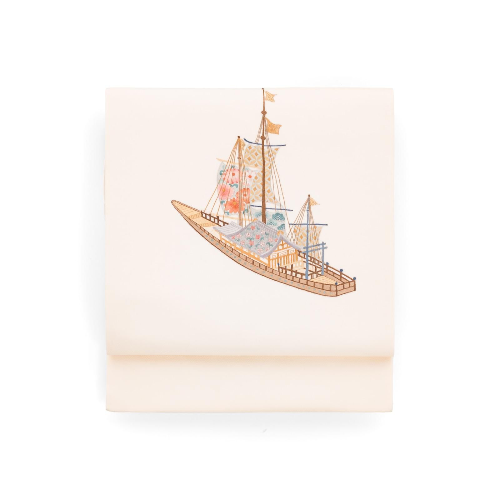 華やかな帆船の蘇州刺繍が美しい九寸名古屋帯です。