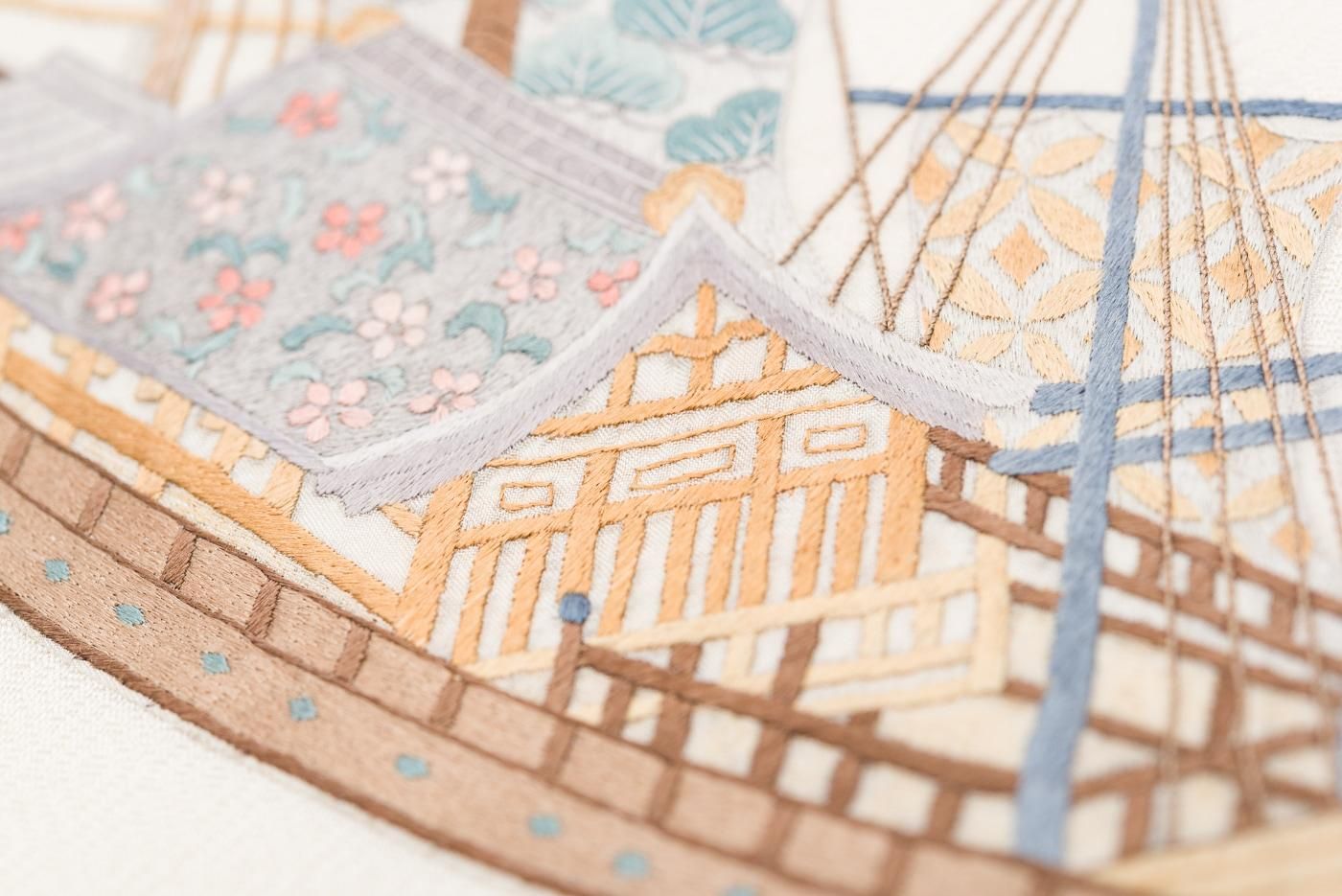 細い絹糸で密に刺繍した模様は仄かな光沢がありとても美しいですね。