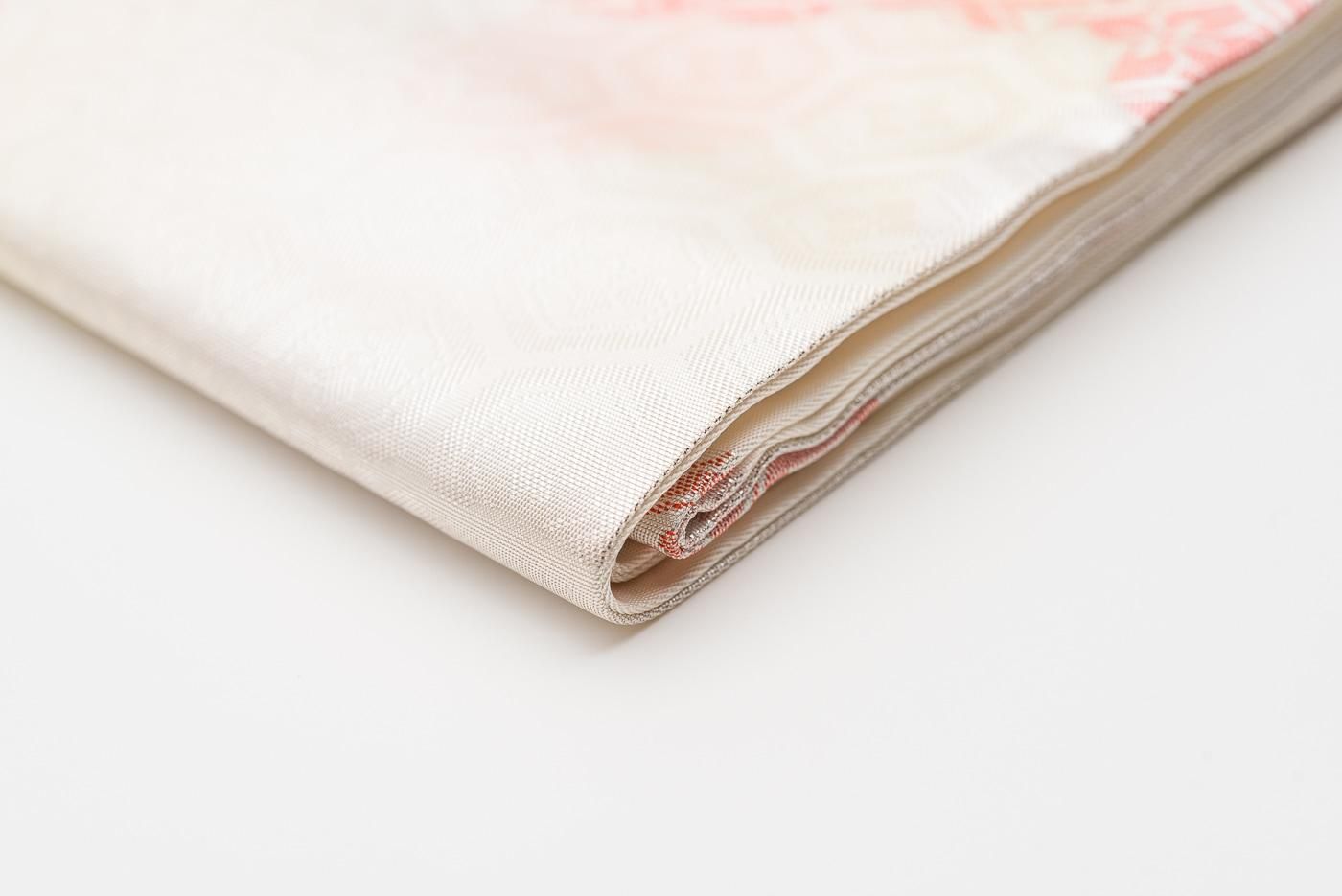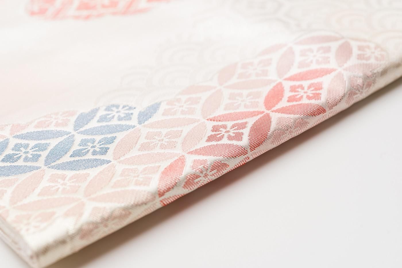 雲取りに花菱、七宝、亀甲などを織り出した九寸名古屋帯です。