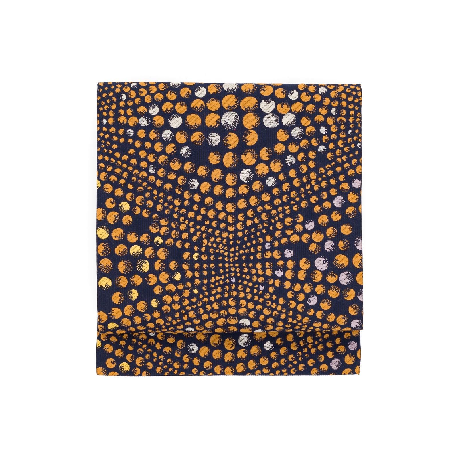金、銀、銅の水玉模様を織り出した九寸名古屋帯です。