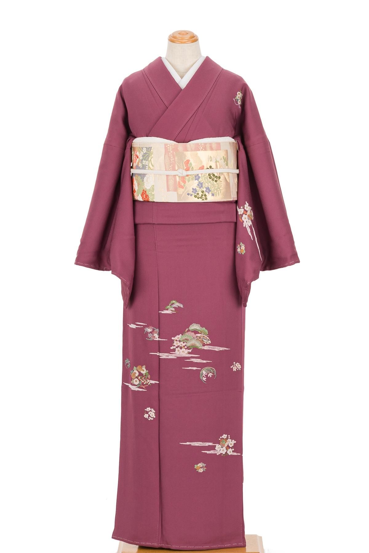 躑躅色の地に相良模様の刺繍が映える訪問着です。
