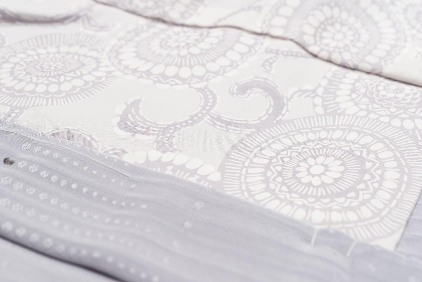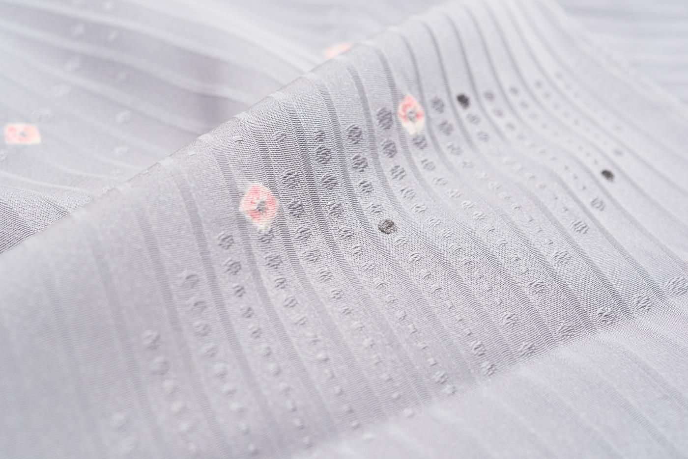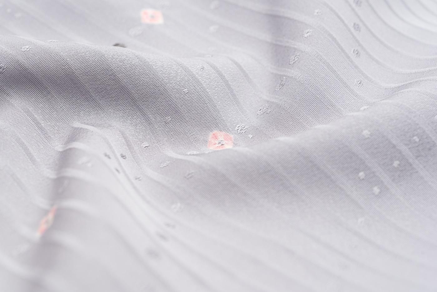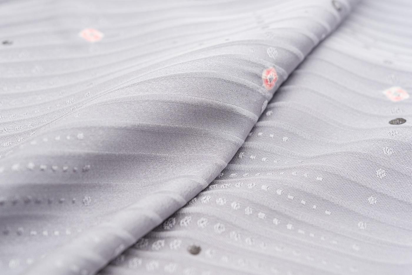 優しいグレーの地に絞りの小さなドット柄が浮かぶ羽織です。
