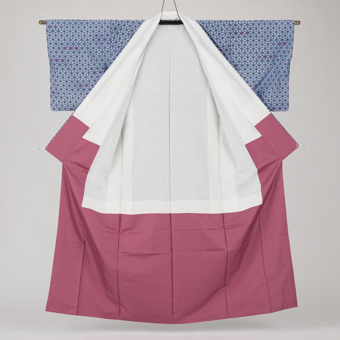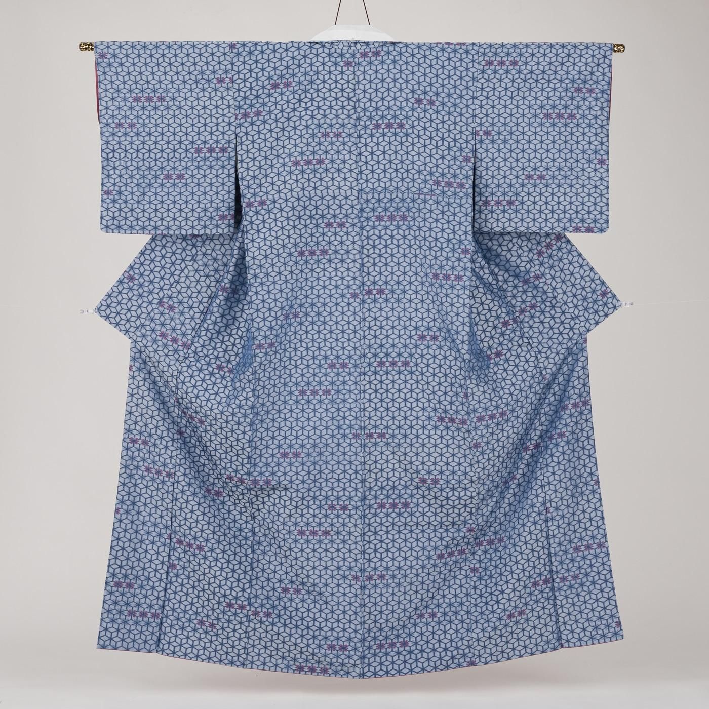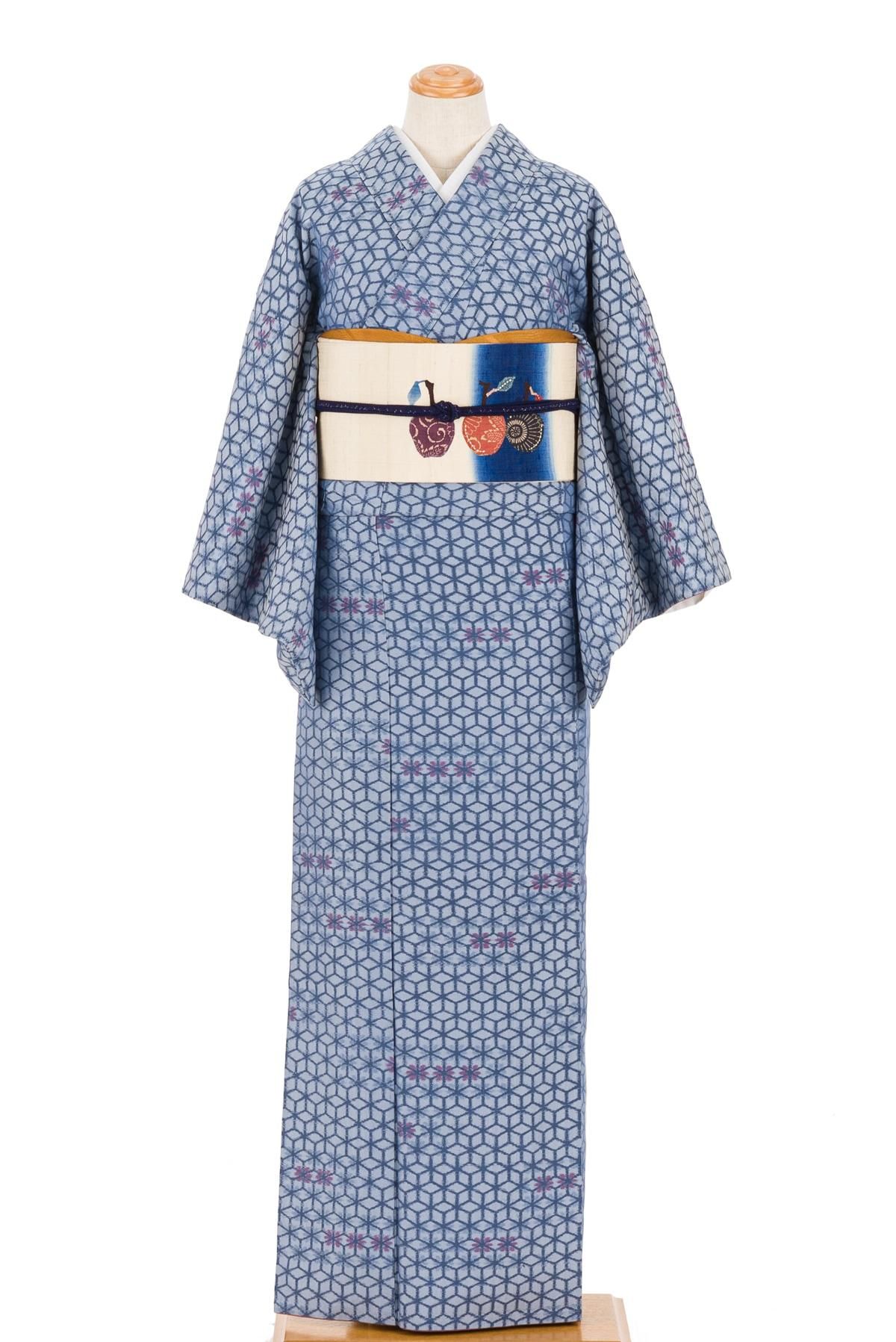薄青の地に細かく麻の葉模様を織り出した紬の着物です。