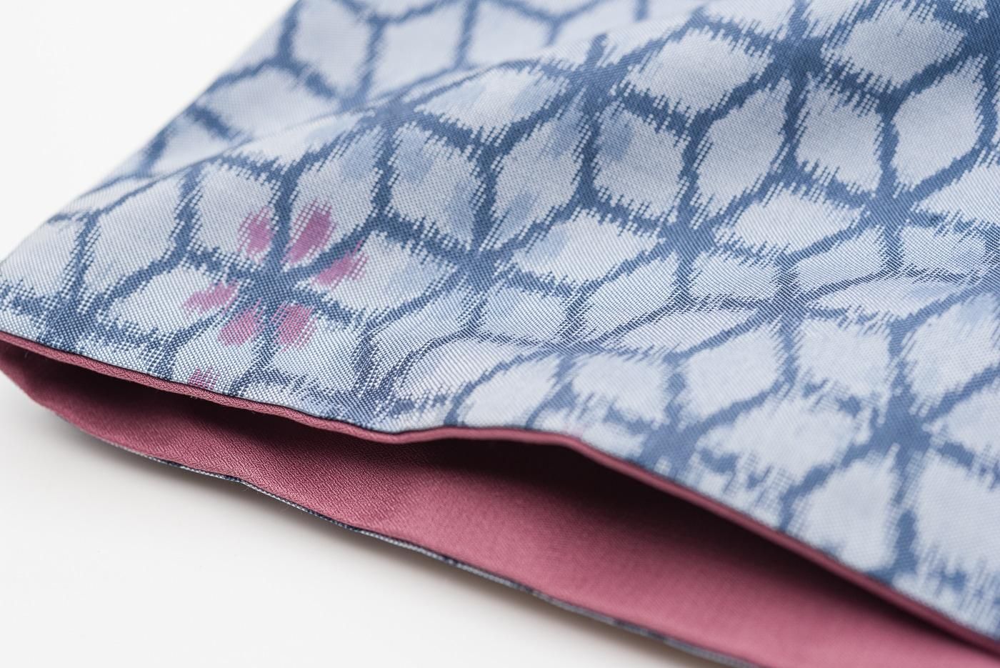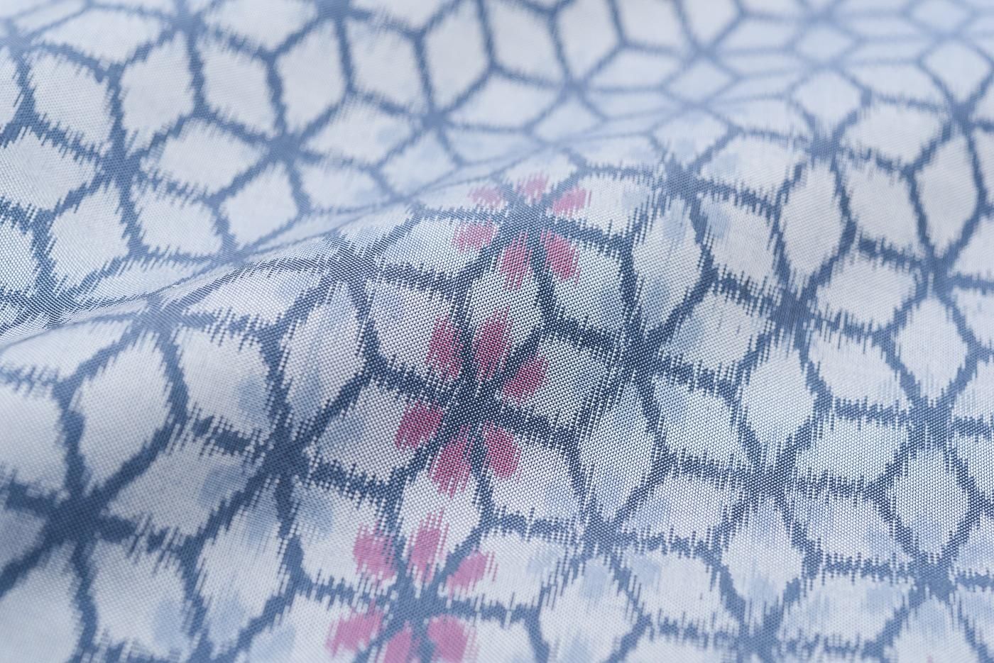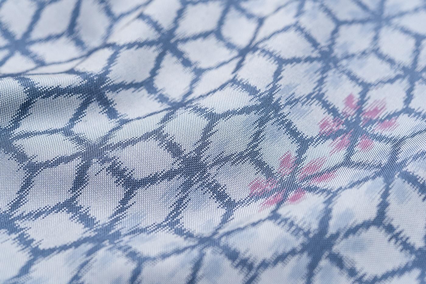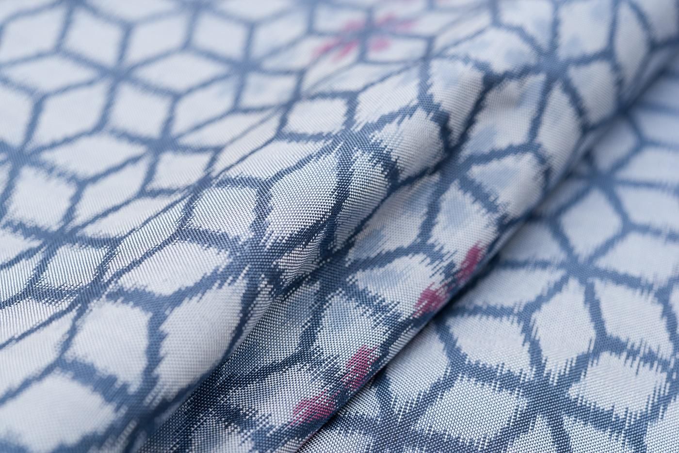 薄青の地に細かく麻の葉模様を織り出した紬の着物です。