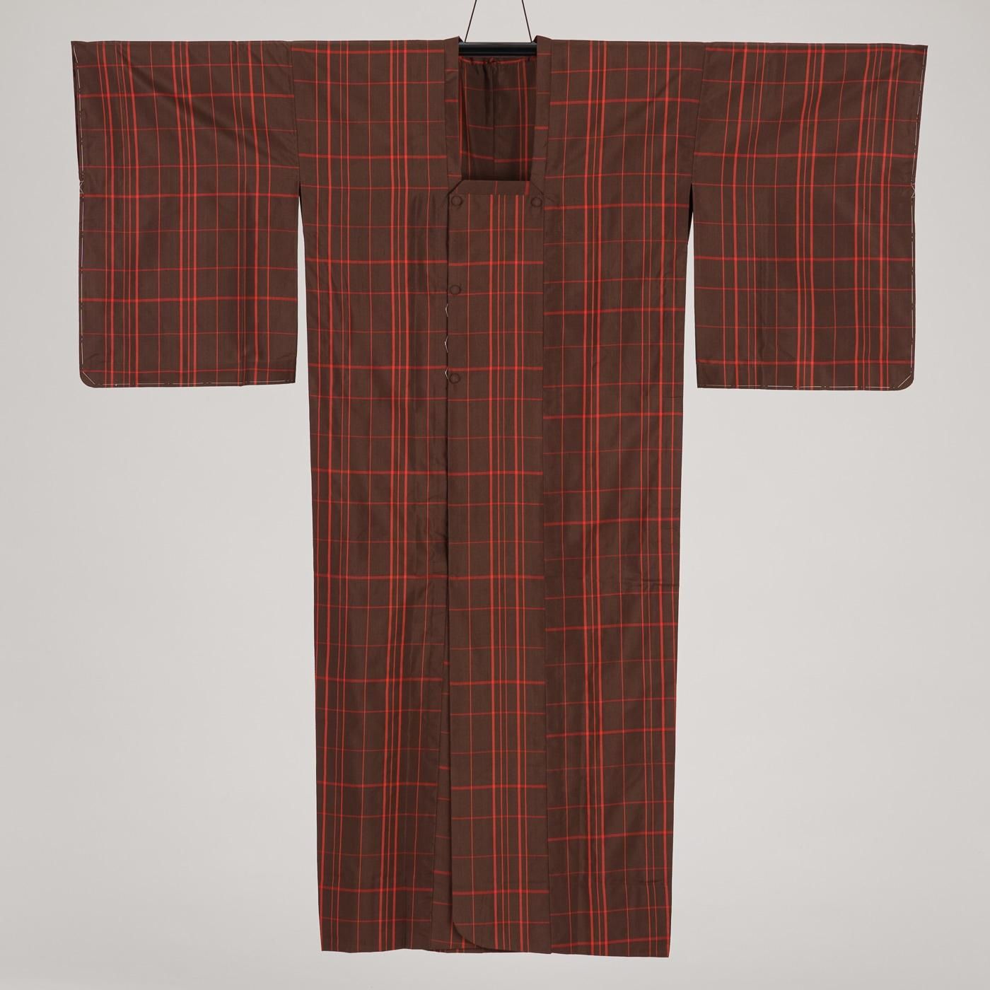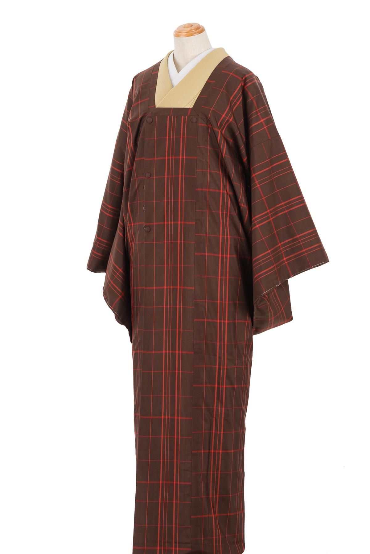 ロングコート 大島紬 赤茶に格子 トールサイズの商品写真