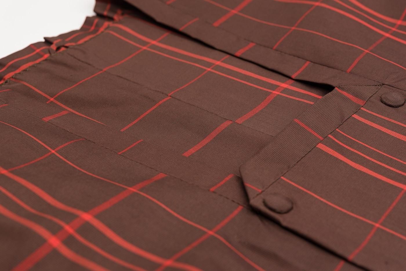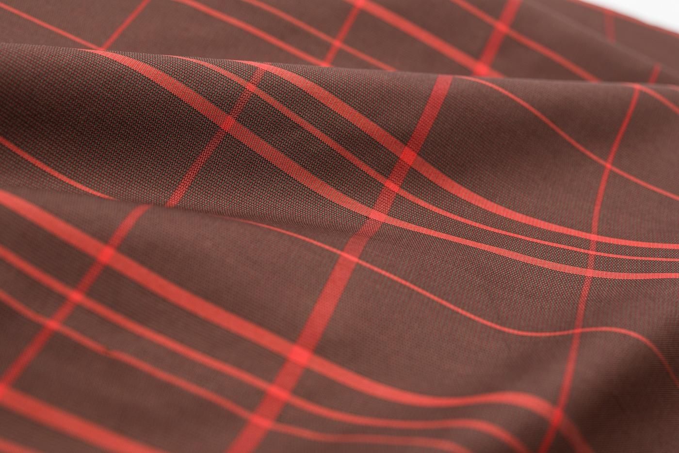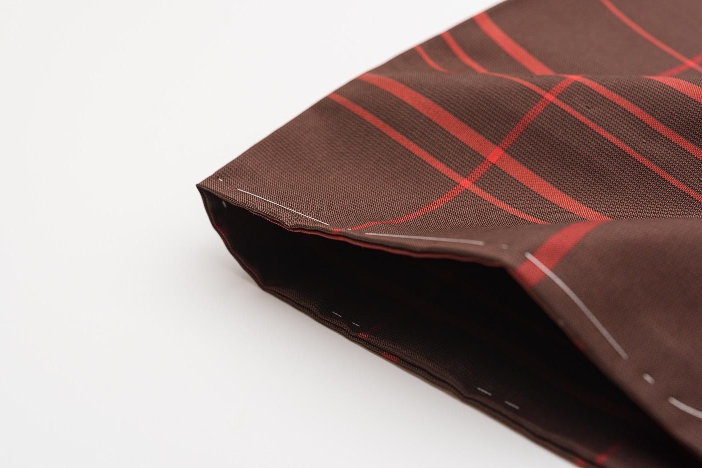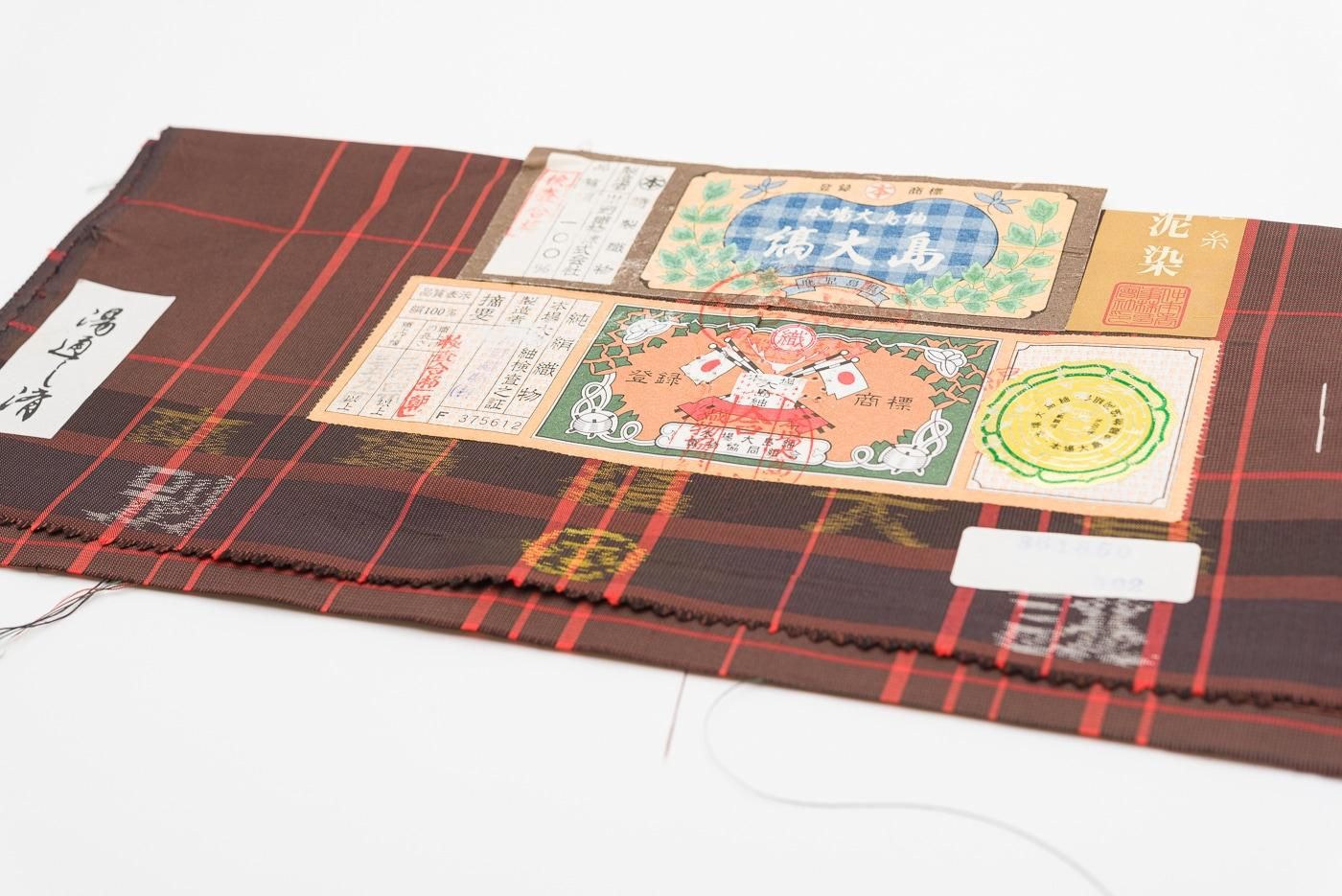 赤茶地に格子模様を織り出したシンプルなデザインですので年齢を問わずお使いいただけます。