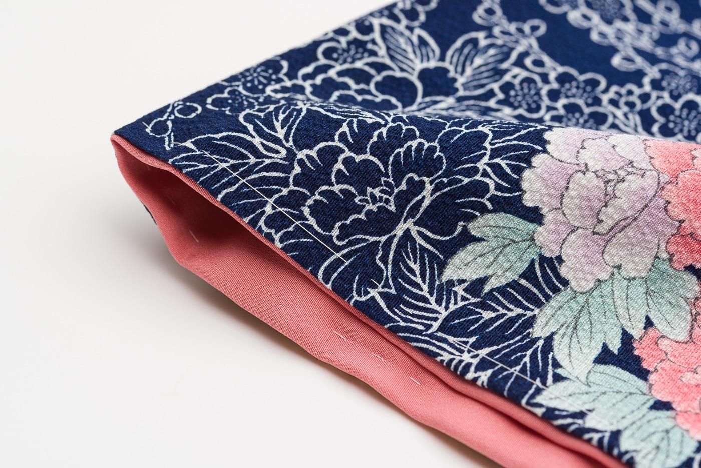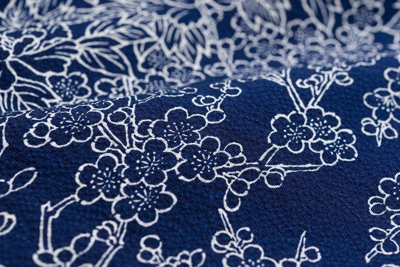 【売り切れ】 紺地 縮緬 牡丹と梅