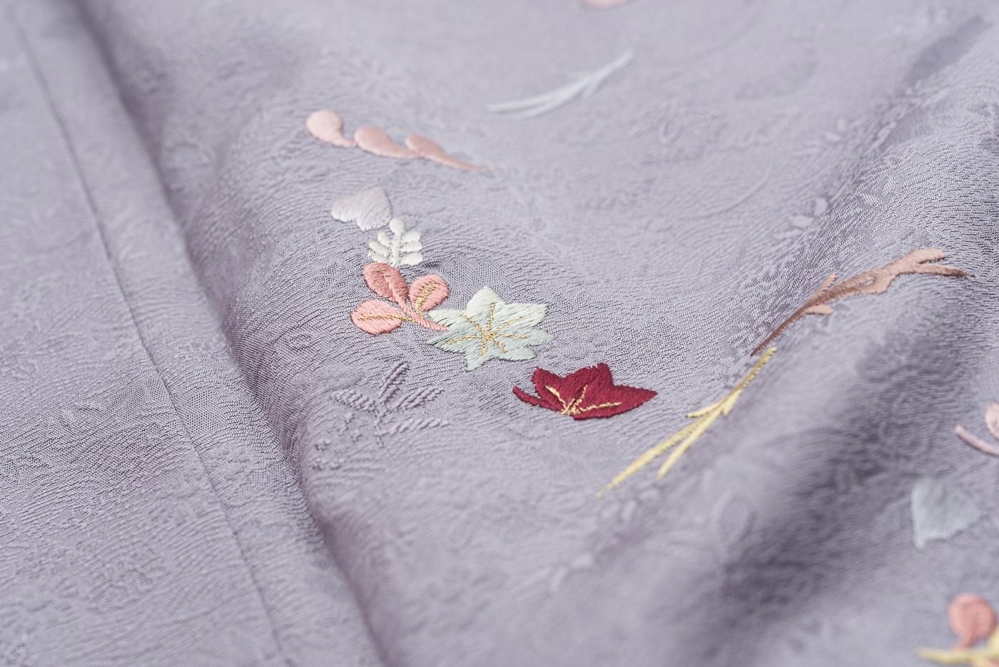 落ち着いた地色に控えめな刺繍を添えた上品なデザインですで、年齢を問わずお召いただけます。