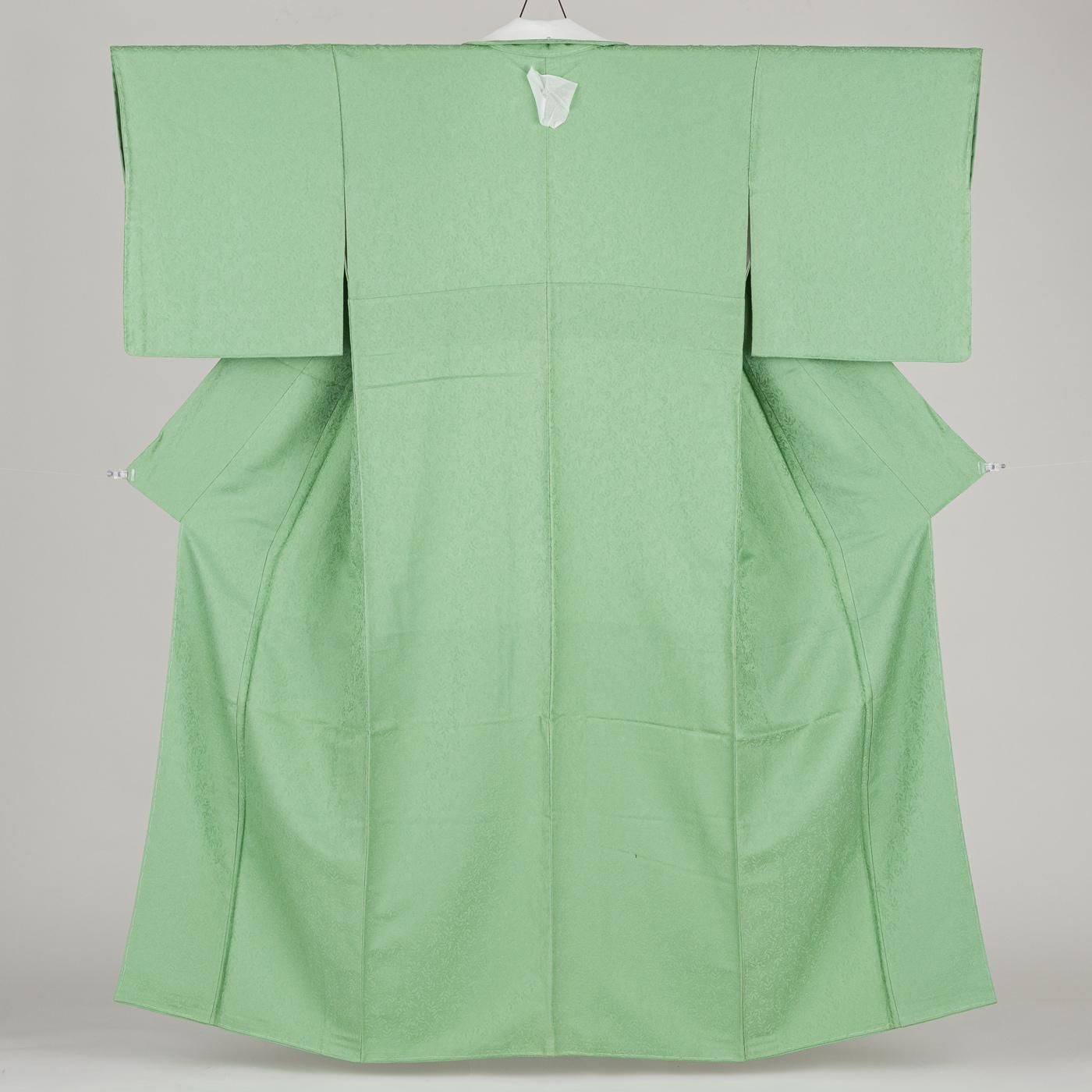 木の葉の地紋が愛らしい若緑色の色無地です。